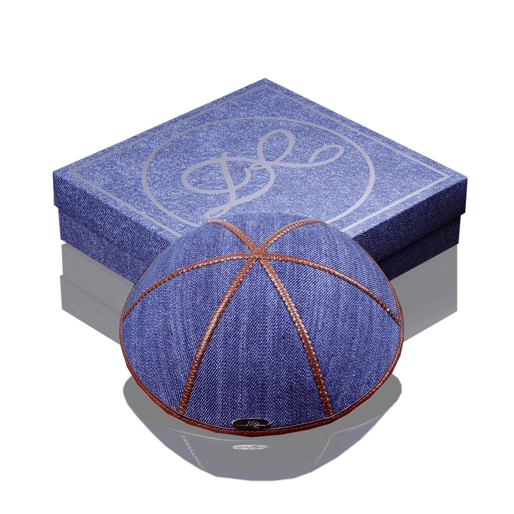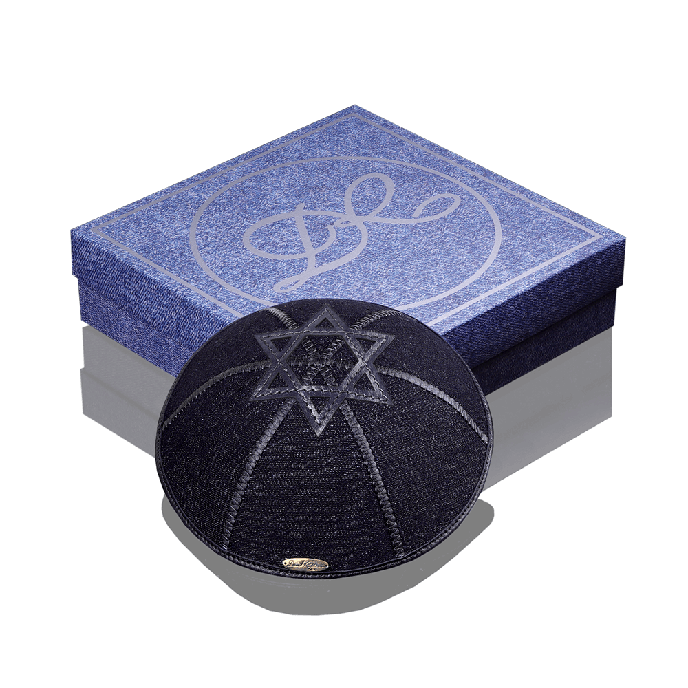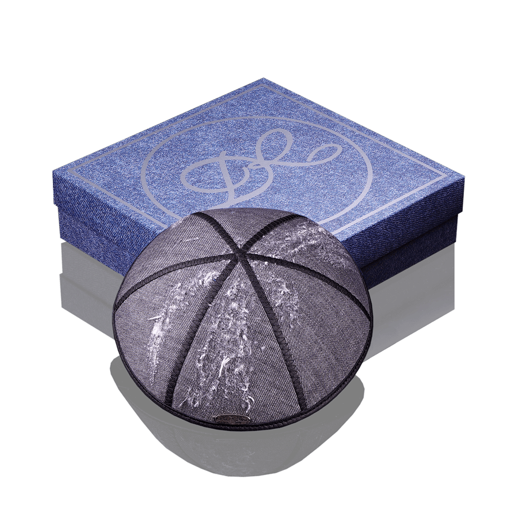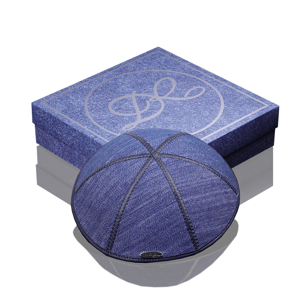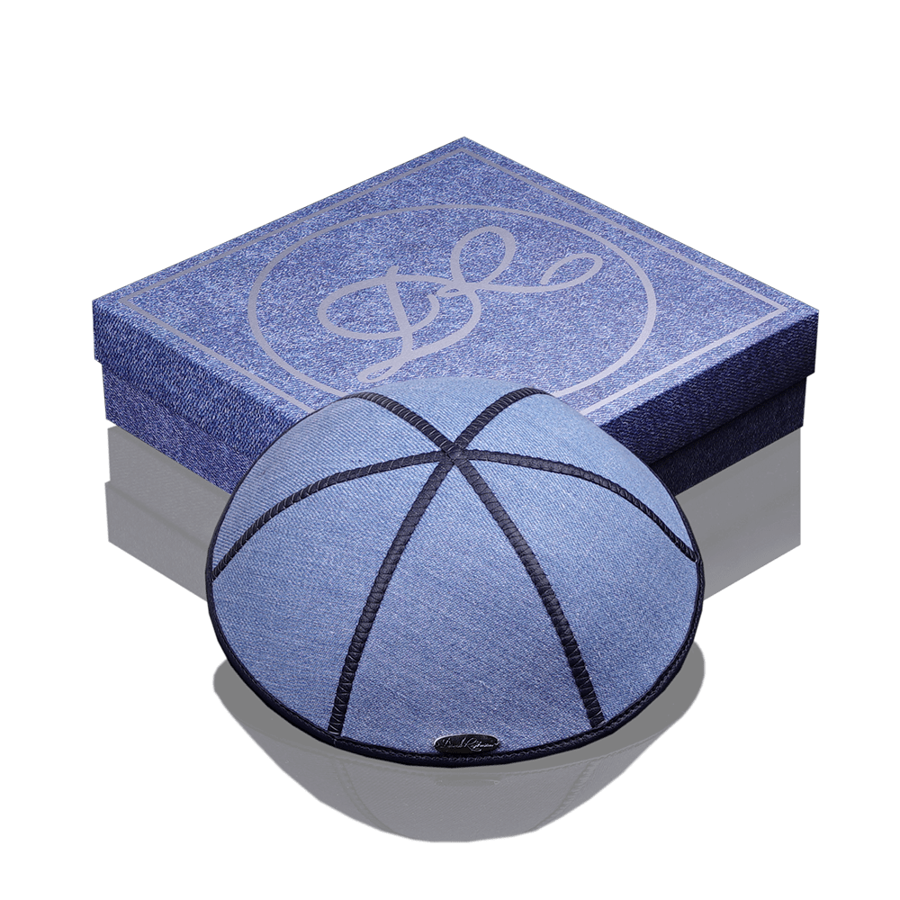 Kippah "770" made of denim from the David Roytman Luxury Judaica design house is an elegant and modern take on the traditional Jewish headdress. Crafted using high quality materials, this kippah combines style and cultural heritage.