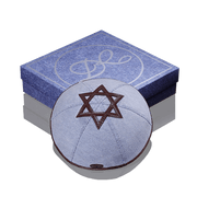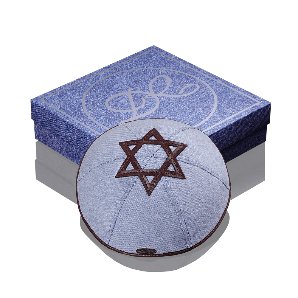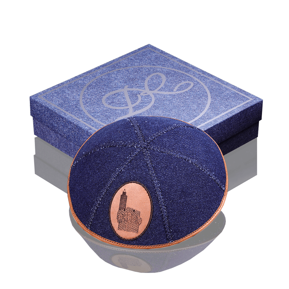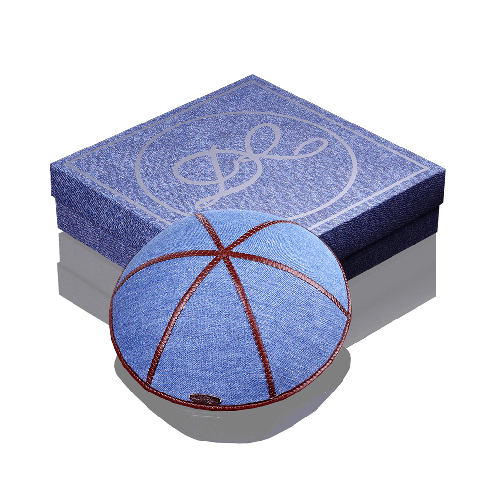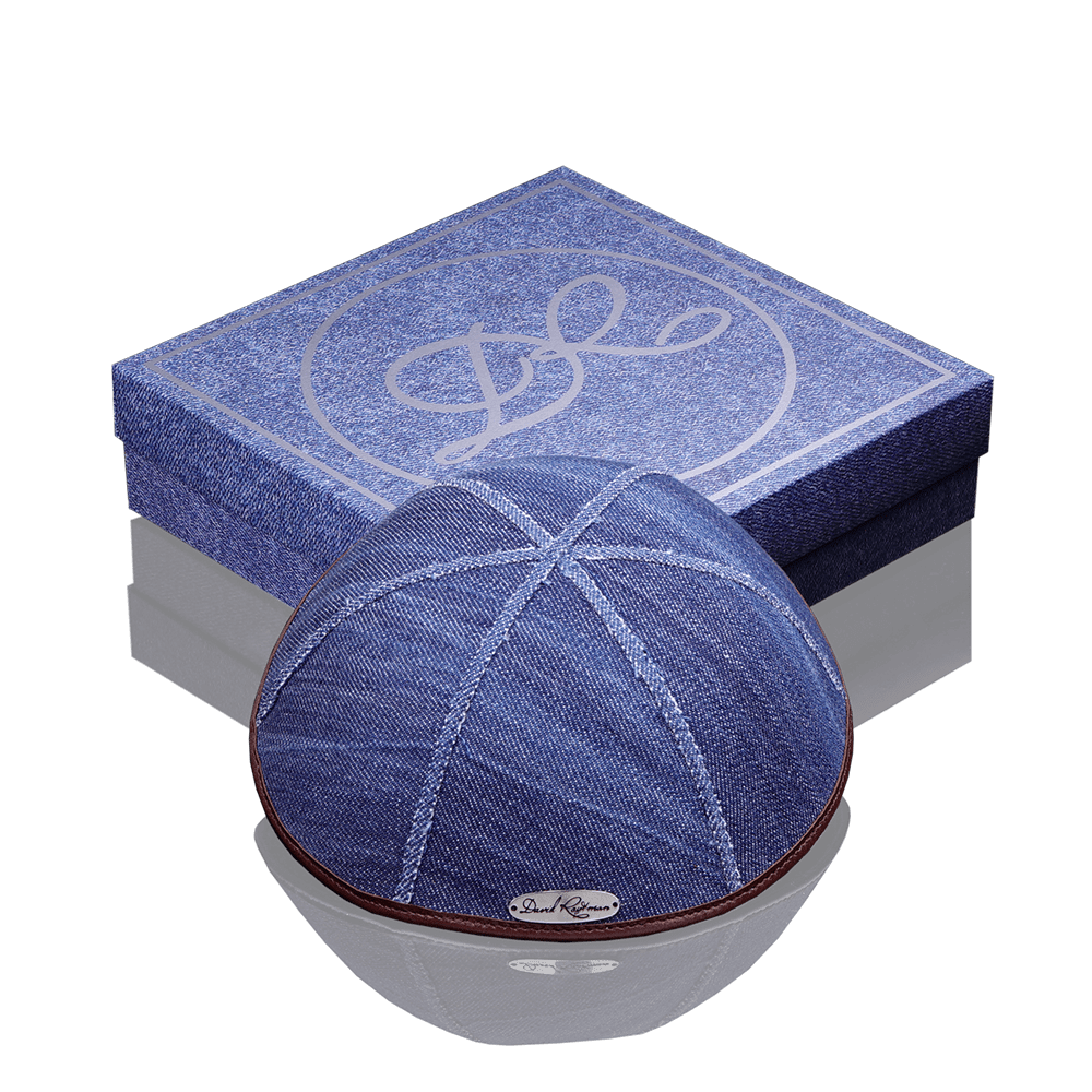 Kippah "770" made of denim from the David Roytman Luxury Judaica design house is an elegant and modern take on the traditional Jewish headdress. Crafted using high quality materials, this kippah combines style and cultural heritage.