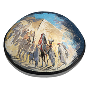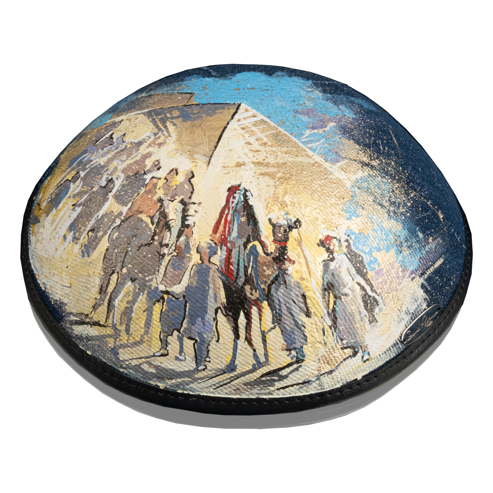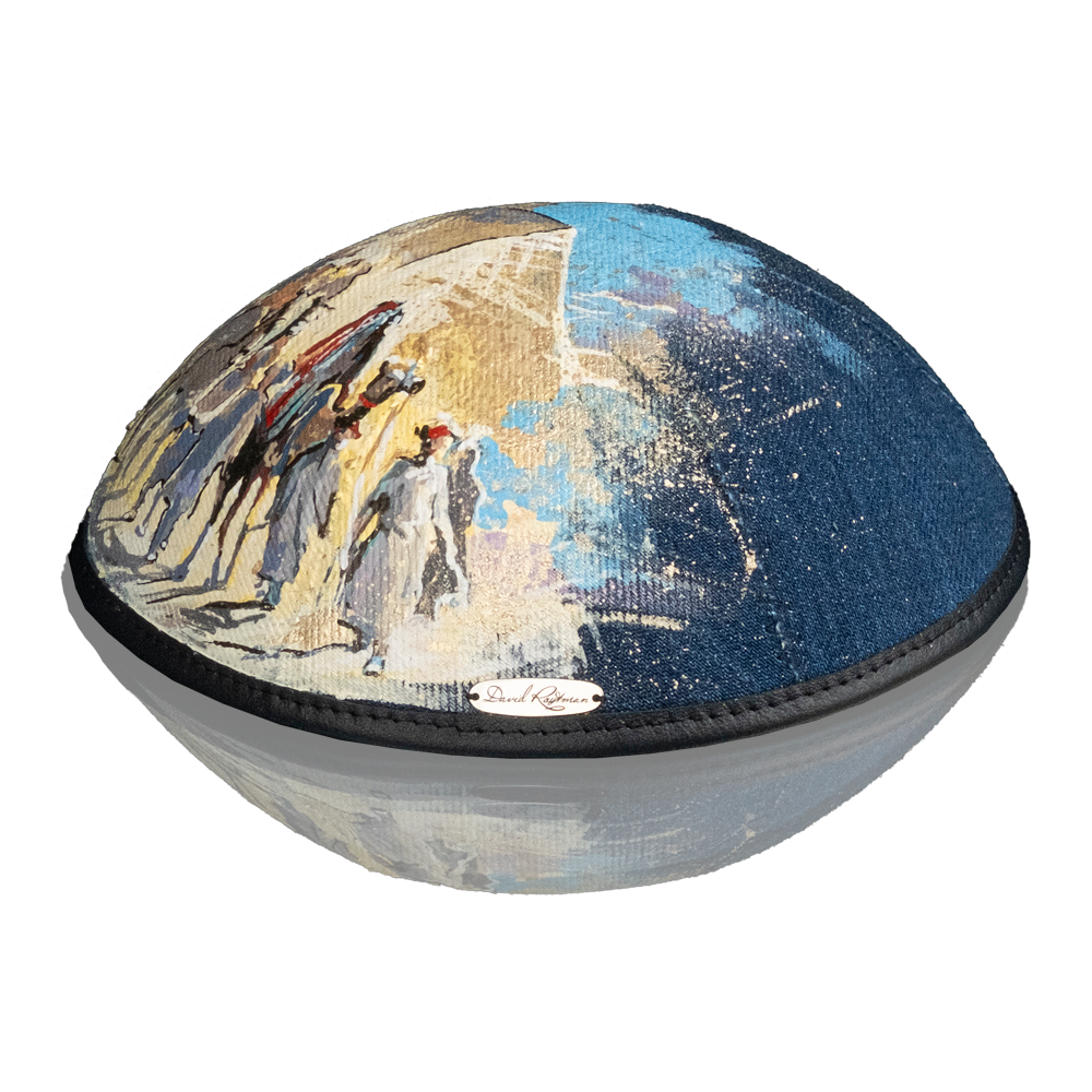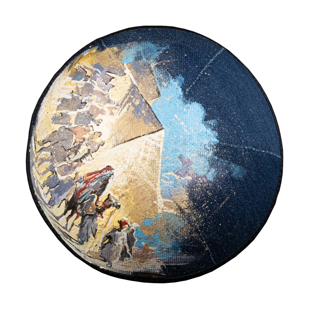 The denim kippah from the “770” art collection featuring the Exodus from Egypt by the design house David Roytman Luxury Judaica is a unique work of art. This kippah, made from high-quality denim, is adorned with a detailed depiction of the biblical scene of the Exodus from Egypt. The “770” collection is known for its creative and bold designs that combine elements of fashion, religious symbolism, and history. Each piece from David Roytman Luxury Judaica is not only an item of clothing but also an expressive artistic statement that highlights the individuality and unique style of its owner.