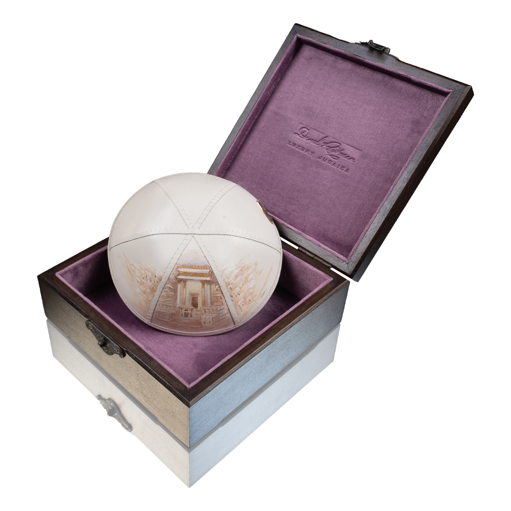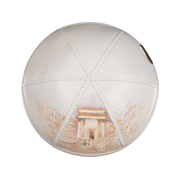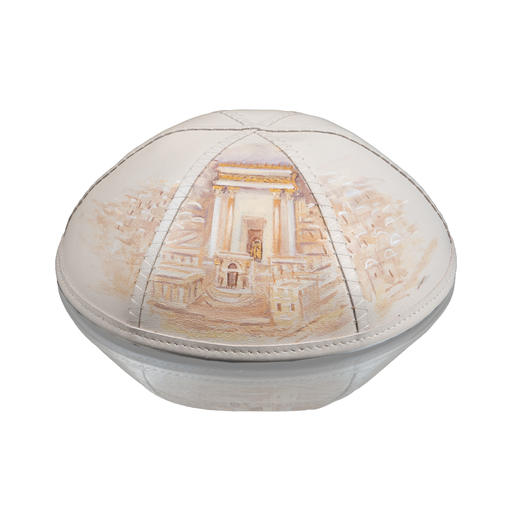 Kippah "770" made of denim with art "Jerusalem" from the David Roytman Luxury Judaica design house is a unique headpiece that combines tradition with contemporary style.