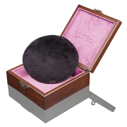 The “770” kippah is handmade by craftsmen. The velour contrasts with the elegant leather trim in the tone of the product, creating a textured look. The medallion features the brand's signature laser-engraved logo.