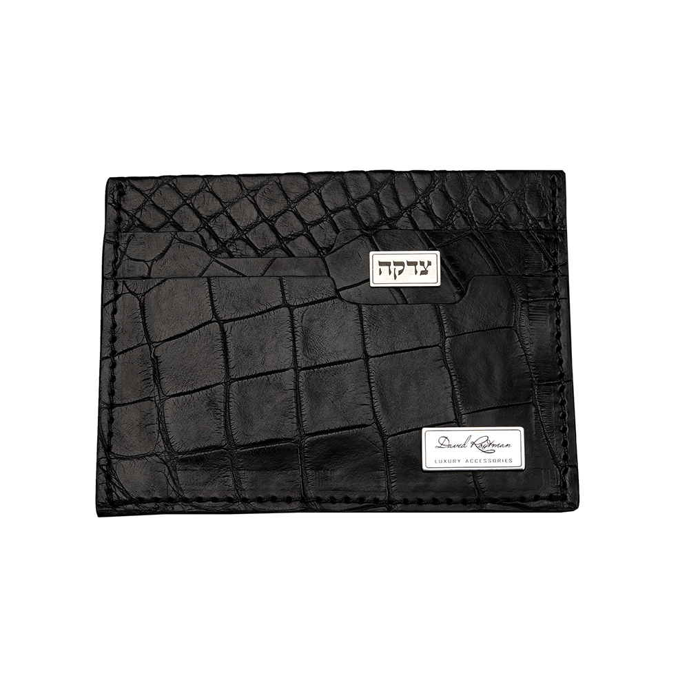 Each cardholder contains a separate pocket for “Tzedakah,” charity. The commandment of tzedakah is one of the most important in Judaism. It obligates everyone to help the needy as a vital part of living a spiritual life.