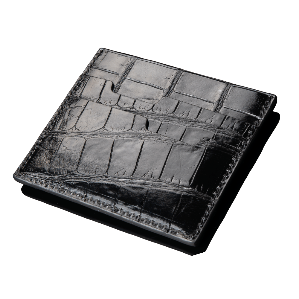The cardholder is made of natural crocodile leather in black color. The leather pattern is unique for each snake, so there is no analog to the product.
