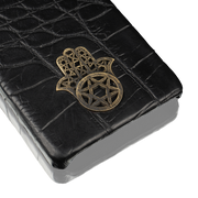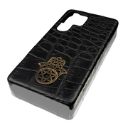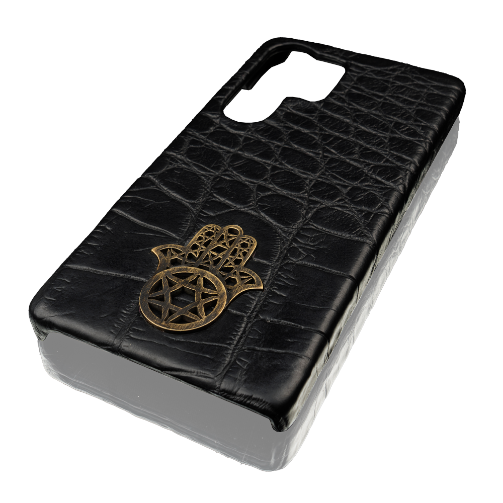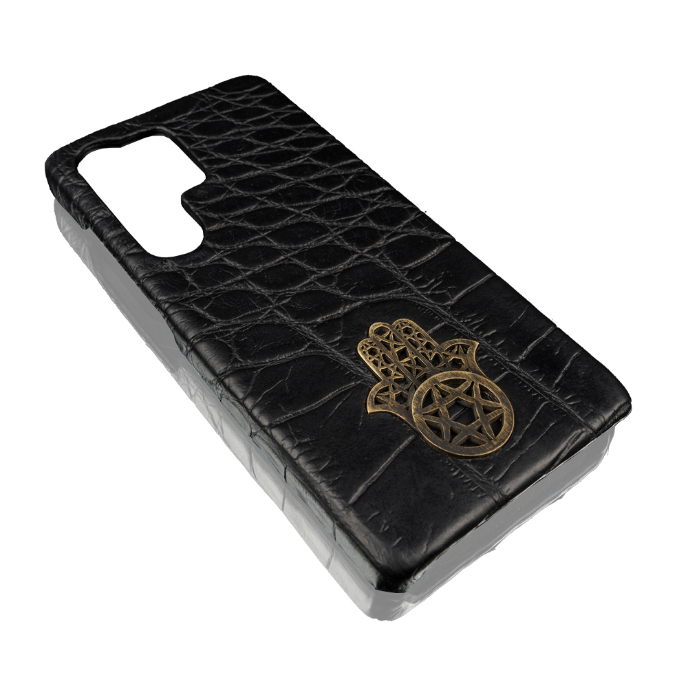 This premium case is handcrafted from genuine crocodile leather — a material prized for its unique texture, strength, and timeless elegance. At its center lies a refined metal Hamsa — an ancient symbol of protection, blessing, and positive energy. Its polished surface contrasts beautifully with the deep, natural texture of the leather, creating a piece that feels as meaningful as it looks. Designed to fit your Samsung Galaxy S25 Ultra with precision, this case offers both luxury and durability — protecting your device while reflecting your individuality.