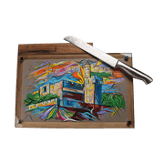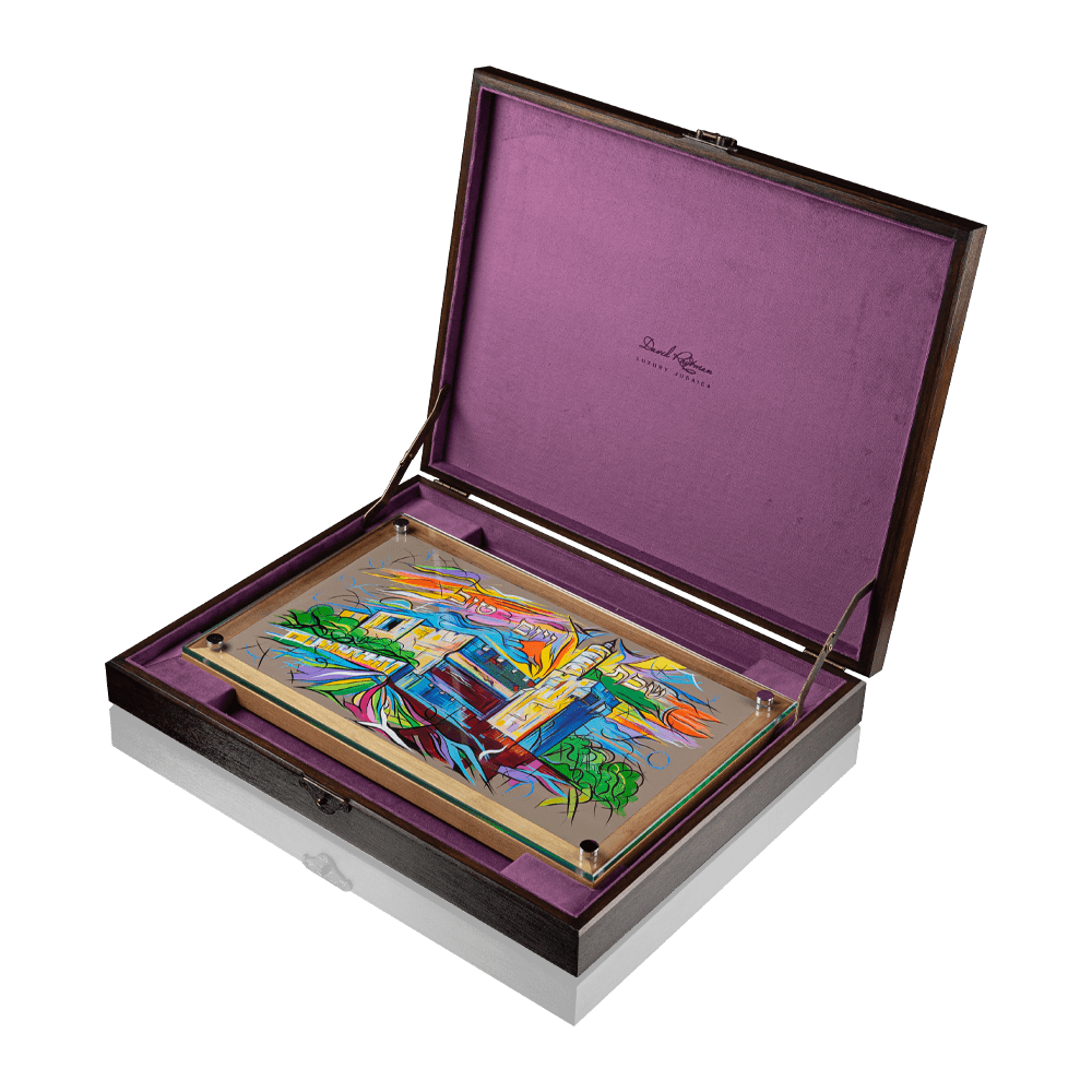 No Shabbat or holiday is without challah. The name of the traditional Jewish bread comes from one of the commandments of the Torah. According to this commandment, when preparing the dough, Jews each time pinch off a small piece and burn it as an offering to God. It was this piece that was first called halah. The set includes a board for cutting challah and a knife. Under a layer of durable glass there is a painting with acrylic colours in the form of the Tower of David. It is handmade by the artists on top of natural Italian leather. The board is made of a combination of dark ash and walnut wood. The knife is made of stainless steel. The handle is laser engraved with the brand logo and the blade with Hebrew letters.