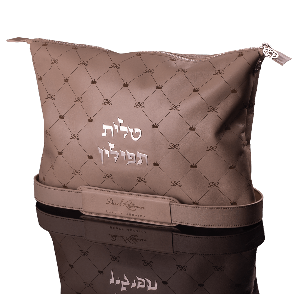 Travel bag “770” for Tallit and Tefillin is made of high quality Italian leather. The brand's signature pattern is laser engraved on the top of the product. The decorative elements are made of brass.