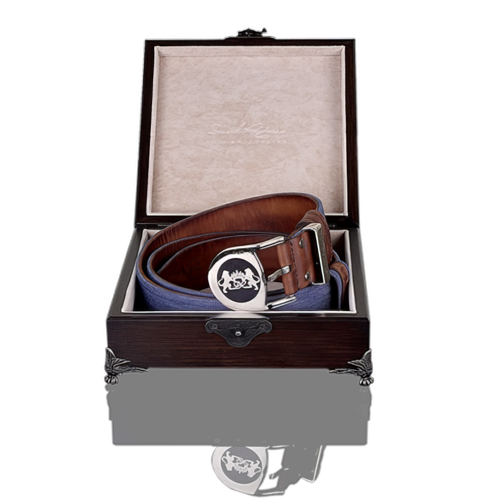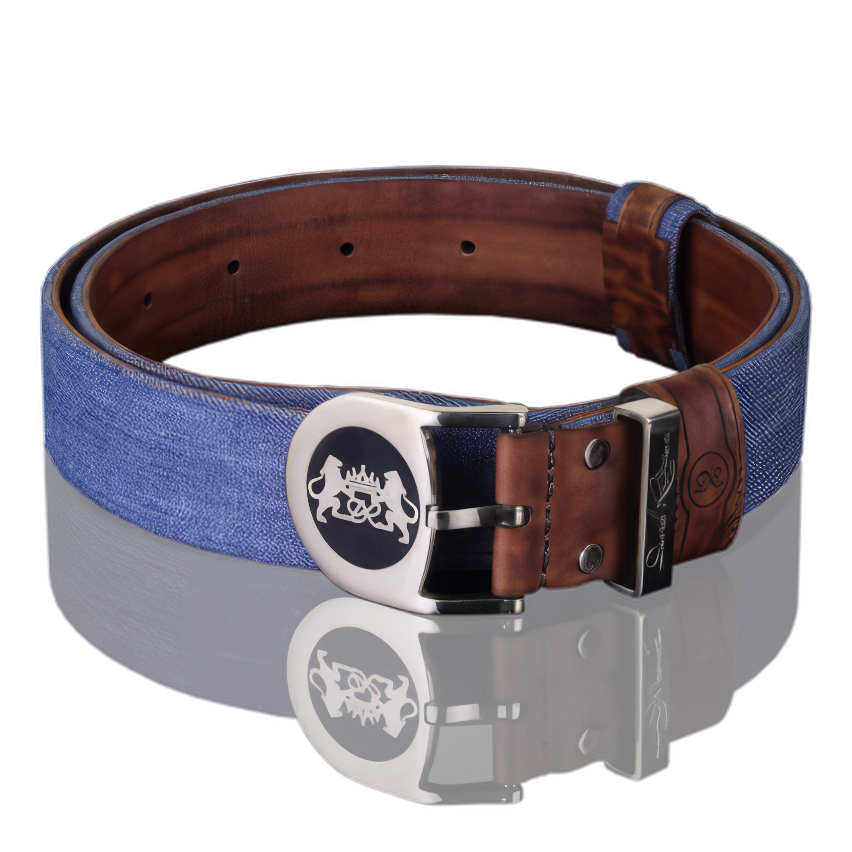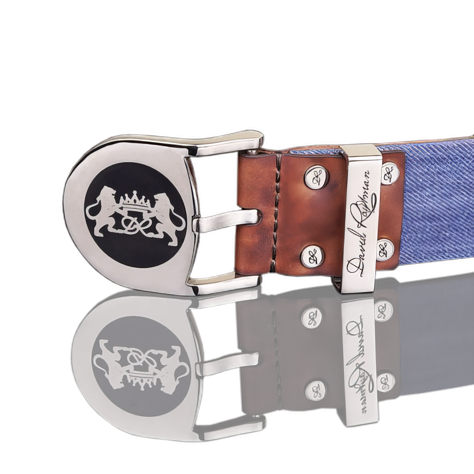 A feature of this model is a massive roller buckle, the design of which, prevents the deformation of the belt, due to the movable part. The emblem of two Jerusalem lions, which is standing on hind legs and holding the crown-the symbol of spiritual enlightenment, God power and authority. A feature of a buckle is an elegantly executed initials and laser engraving of the DR Judaica logo on the strap for blackening the belt with drawing and handmade polished.