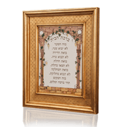 Birkat Habayit is made of genuine Italian leather and hand-painted with acrylic paints. The wooden frame of the blessing is made of a combination of light alder and ash wood. Its light golden glow brings a note of reverence to the piece.