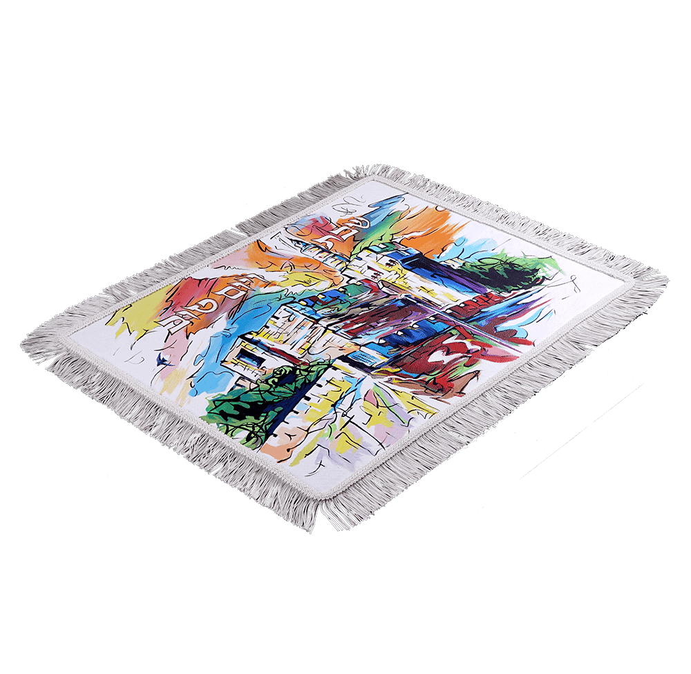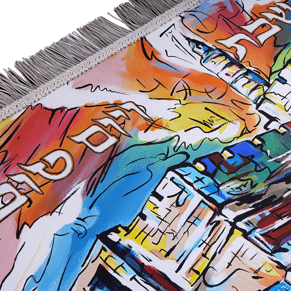 This elegant leather challah cover is made of genuine Italian leather and hand painted with acrylics. The picture shows the Tower of David. The edges of the cover are decorated with lush fringe. With this cover, the challah will retain its aroma, and the holiday - its solemnity.