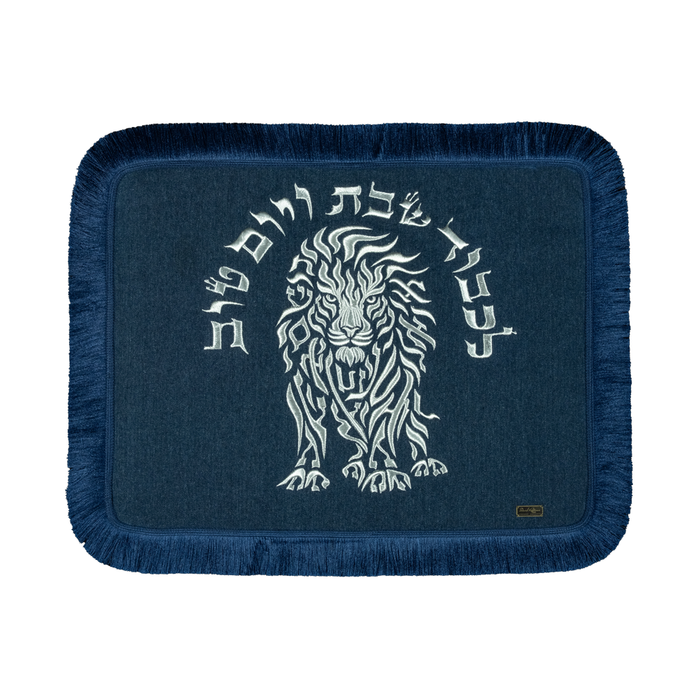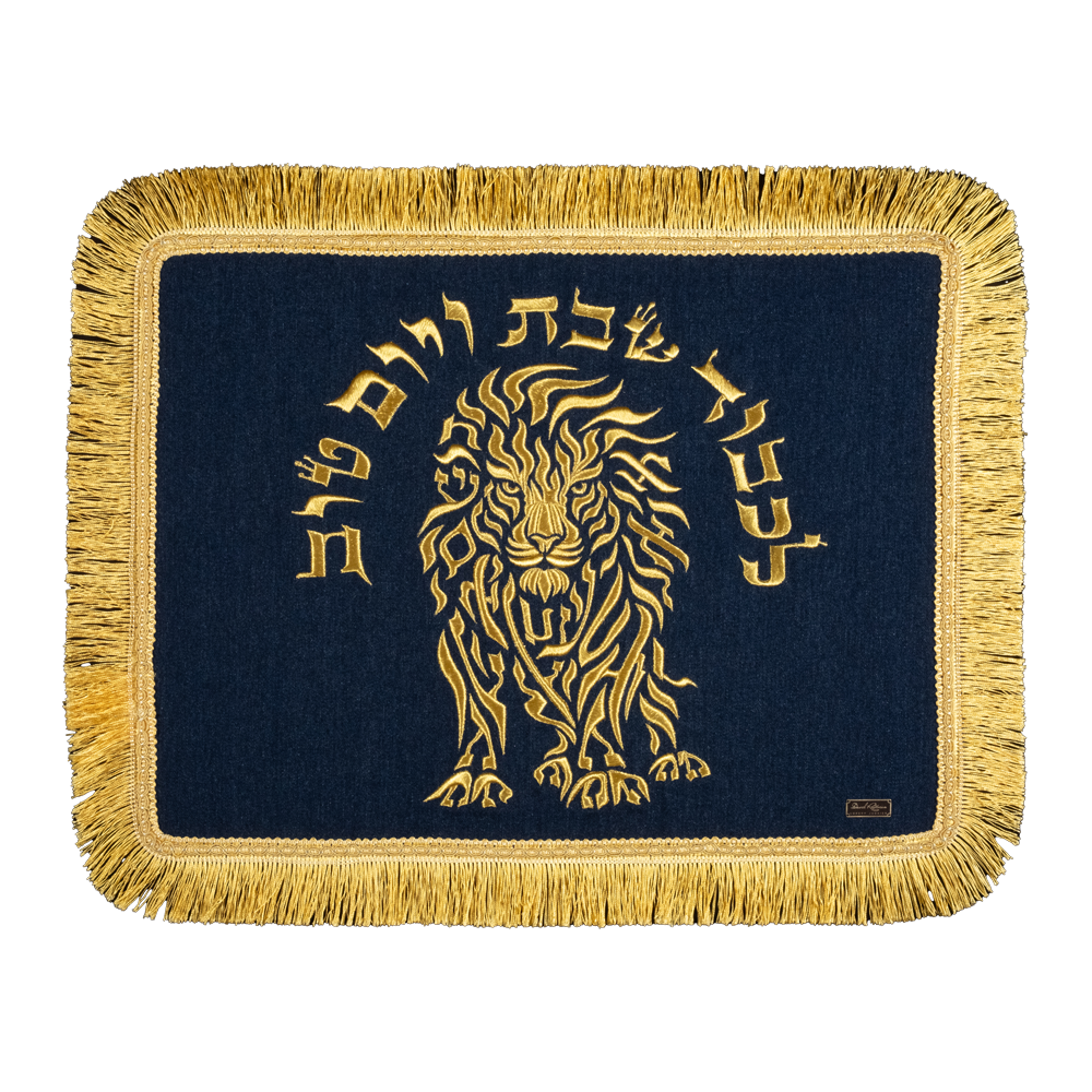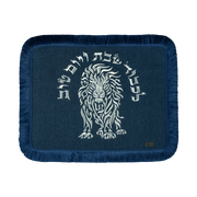 No Shabbat or holiday is complete without challah. The name of this traditional Jewish bread comes from one of the commandments of the Torah. According to it, when preparing dough, Jews would each time pinch off a small piece and burn it as an offering to God. It was this piece that was originally called challah. The elegant challah cover “Lion” is made of high-quality denim fabric with embroidery in golden threads. The embroidery depicts a lion formed from Hebrew letters, symbolizing strength, courage, and inner nobility.