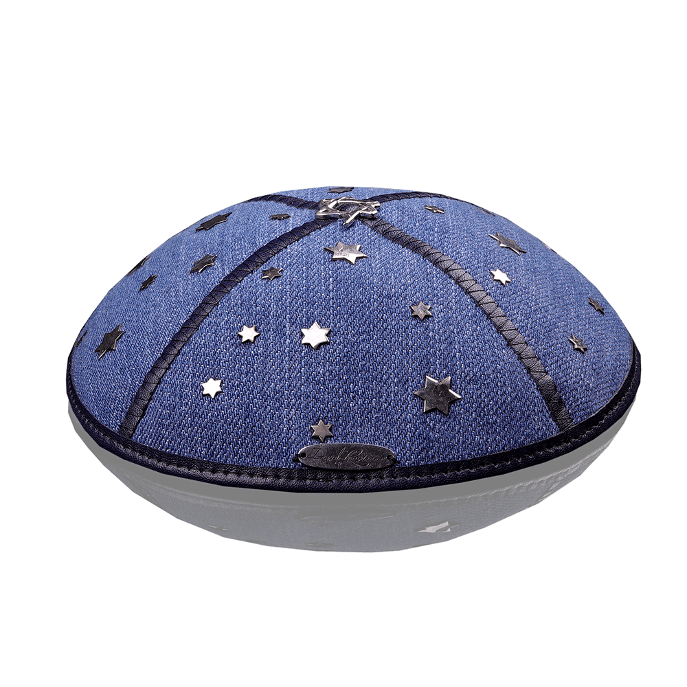 Kippah "Classic" "Starry Sky" made of denim with dark blue edging, Valentin Yudashkin by David Roytman