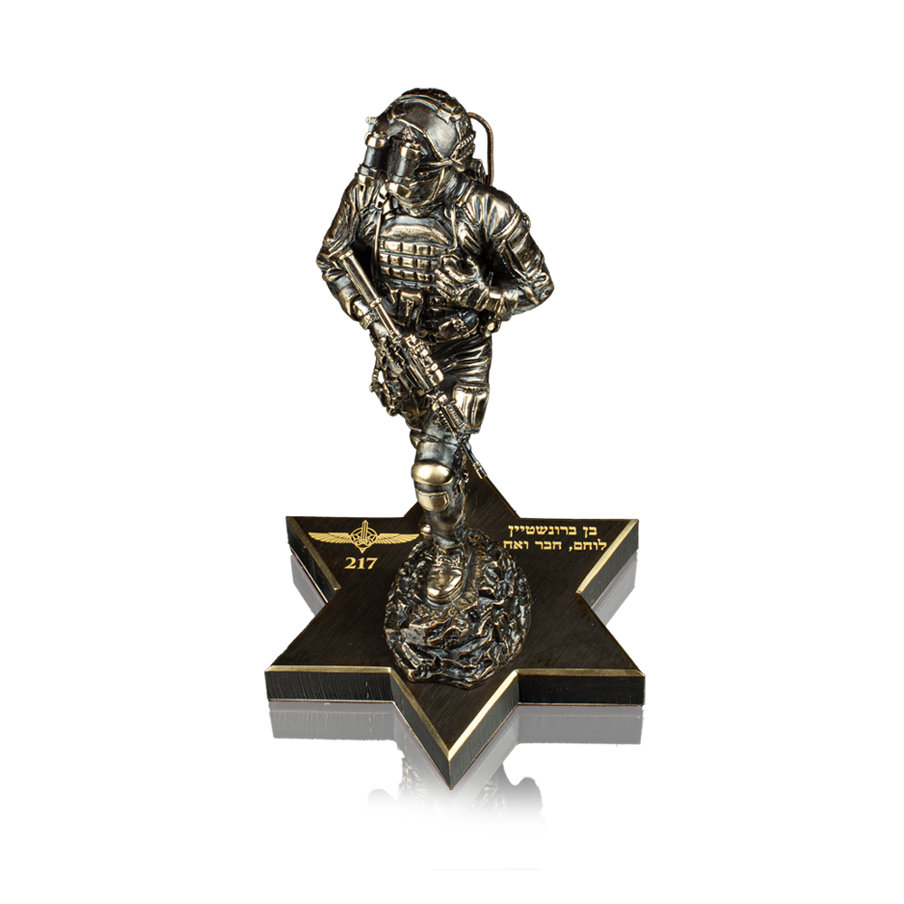 The statuette “Commander of Special Unit 217” is a masterpiece created by the David Roytman Luxury Judaica design house, embodying the fortitude, honour, and courage of the elite soldiers of the Israel Defense Forces.