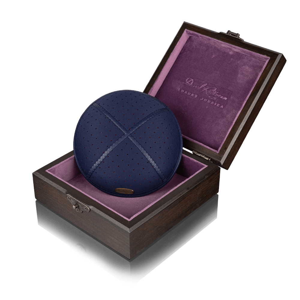 The “Classic” kippah from the perforated suit collection by David Roytman Luxury Judaica is a sophisticated accessory that combines modern style with refined details, giving a traditional piece of clothing a distinctive character. The perforated design of this kippah adds a note of lightness, making it not only a stylish but also a comfortable accessory for various occasions.