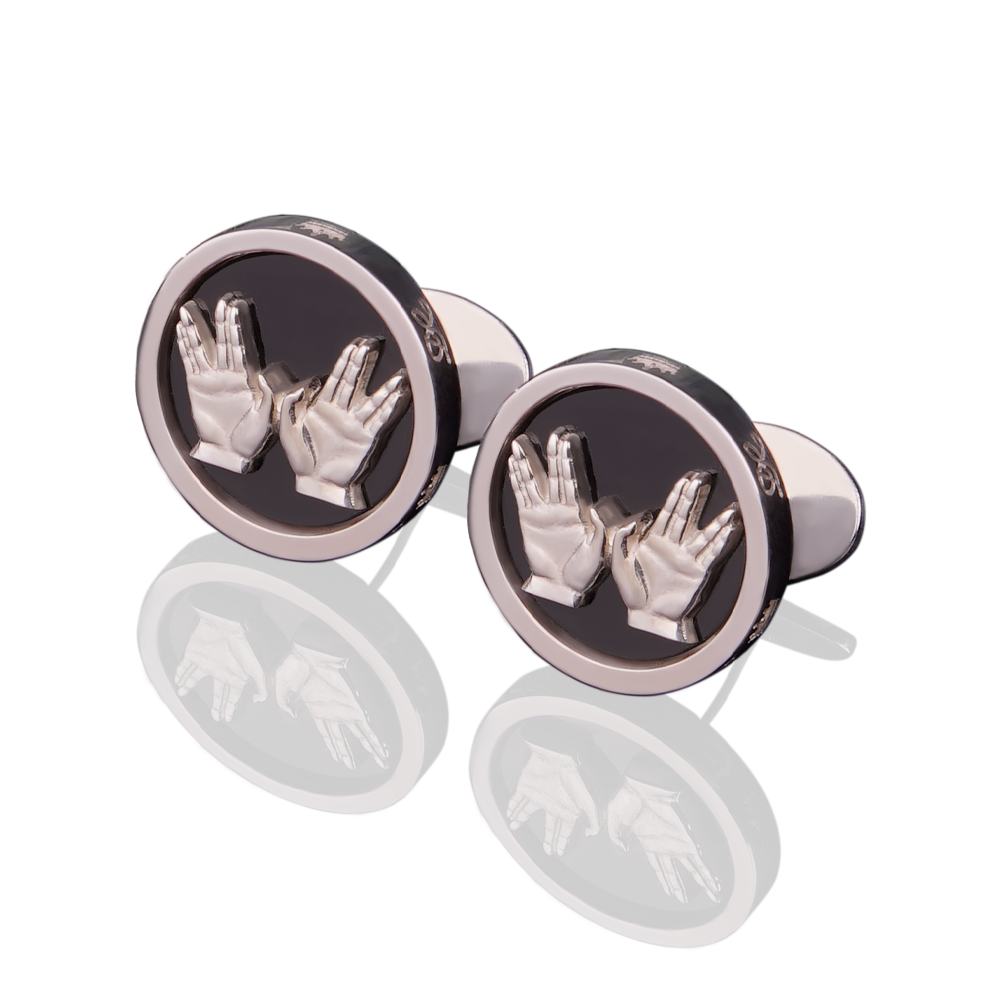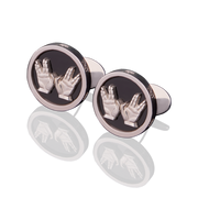 Cuff links are a small but very significant detail of a men's business wardrobe. With cuff links from the design house David Roytman Luxury Judaica, you will not defiantly, but confidently emphasize your respect for Jewish culture. The cuff links are handmade from silver. The central part is made of natural onyx. The brand logo is laser engraved on the sides of the product. The classic clasp securely secures the cuff links to the cuffs.