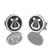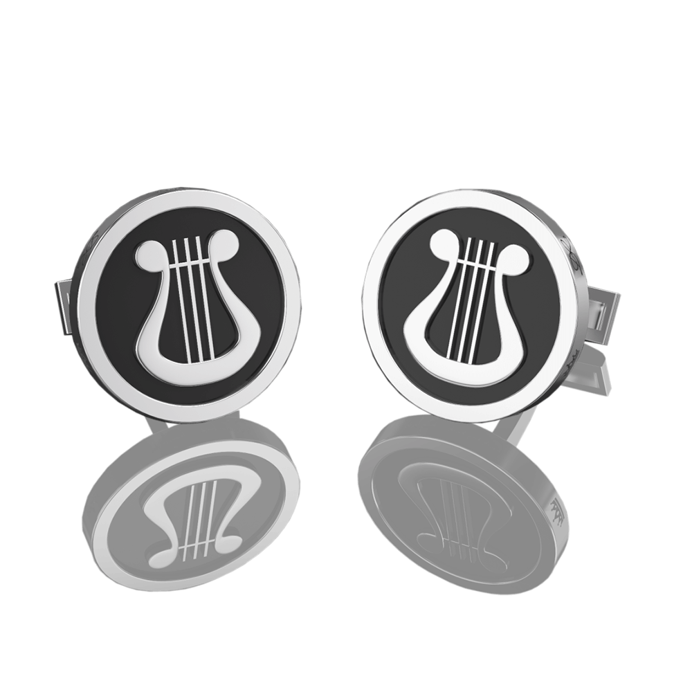 Cuff links are a small but very significant detail of a men's business wardrobe. With cuff links from the David Roytman Luxury Judaica design house, you will not defiantly, but confidently emphasize your respect for Jewish culture. The cuff links are handmade from silver. The central part is made of natural onyx. The brand logo is laser engraved on the sides of the product. The classic clasp securely secures the cuff links to the cuffs.