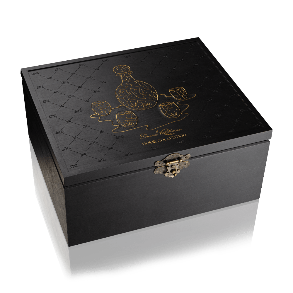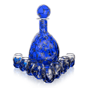We present to your attention a unique set consisting of a decanter and shot glasses, handmade with hand-painted patterns of letters of the Hebrew alphabet from the David Roytman Luxury Judaica design house. This set not only serves as a practical element of table setting, but is also a true work of art, embodying the richness of cultural heritage and spirituality.