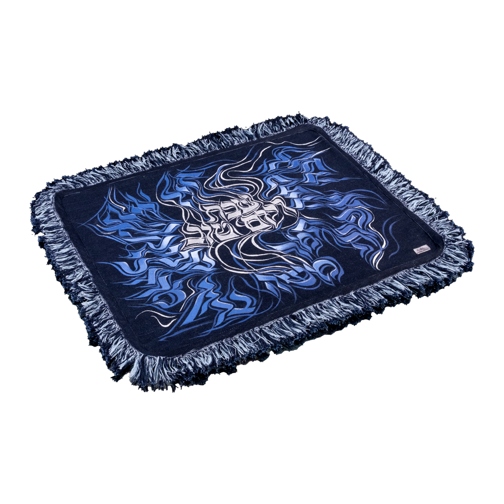 The cover is crafted from high-quality denim fabric and hand-painted with special acrylic paints for textiles. Its artistic composition features stylized Hebrew letters, representing the sacred language of creation and prayer — a timeless reminder of faith, wisdom, and divine connection.