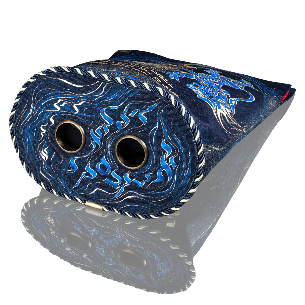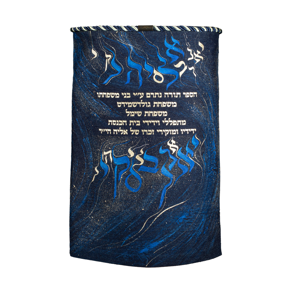 The design house David Roytman has created an ART Collection of unique Torah covers. The Torah cover from the ART Collection is made of denim, featuring hand-painted acrylic artwork.