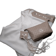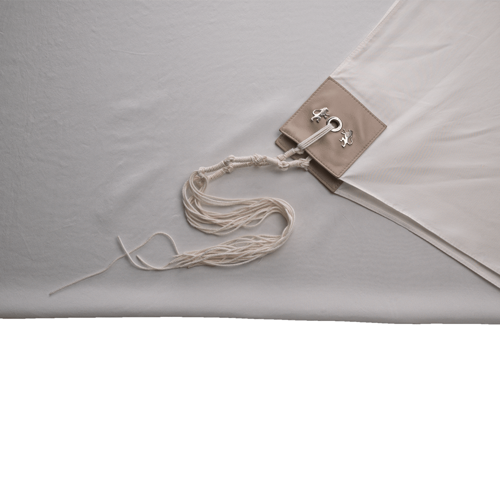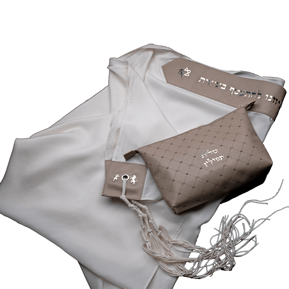 A beige leather patch with the letters of the tallit, engraved on it, decorates the tallit with dignity. The tzitzit is hand-woven by craftsmen from natural threads.