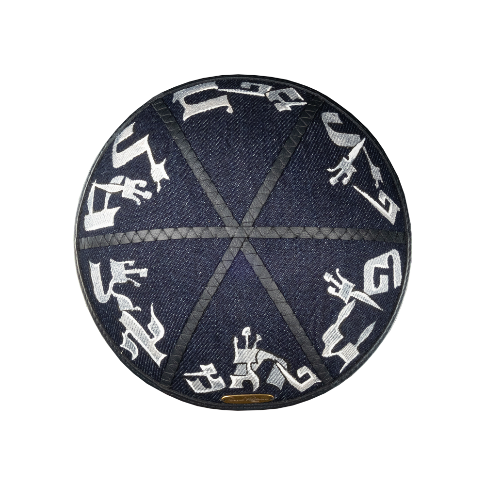 Kippah "Modern" with art "Letters of the Hebrew alphabet" made of denim