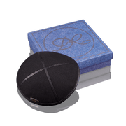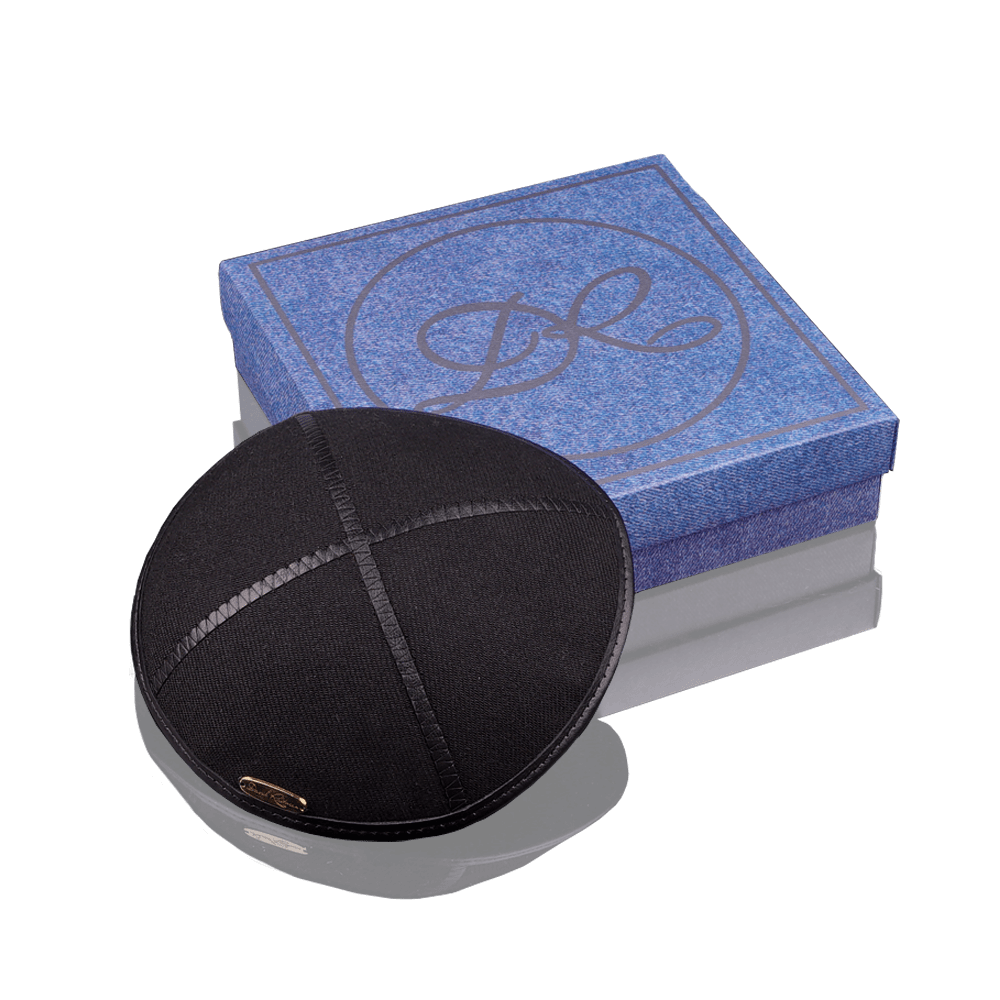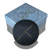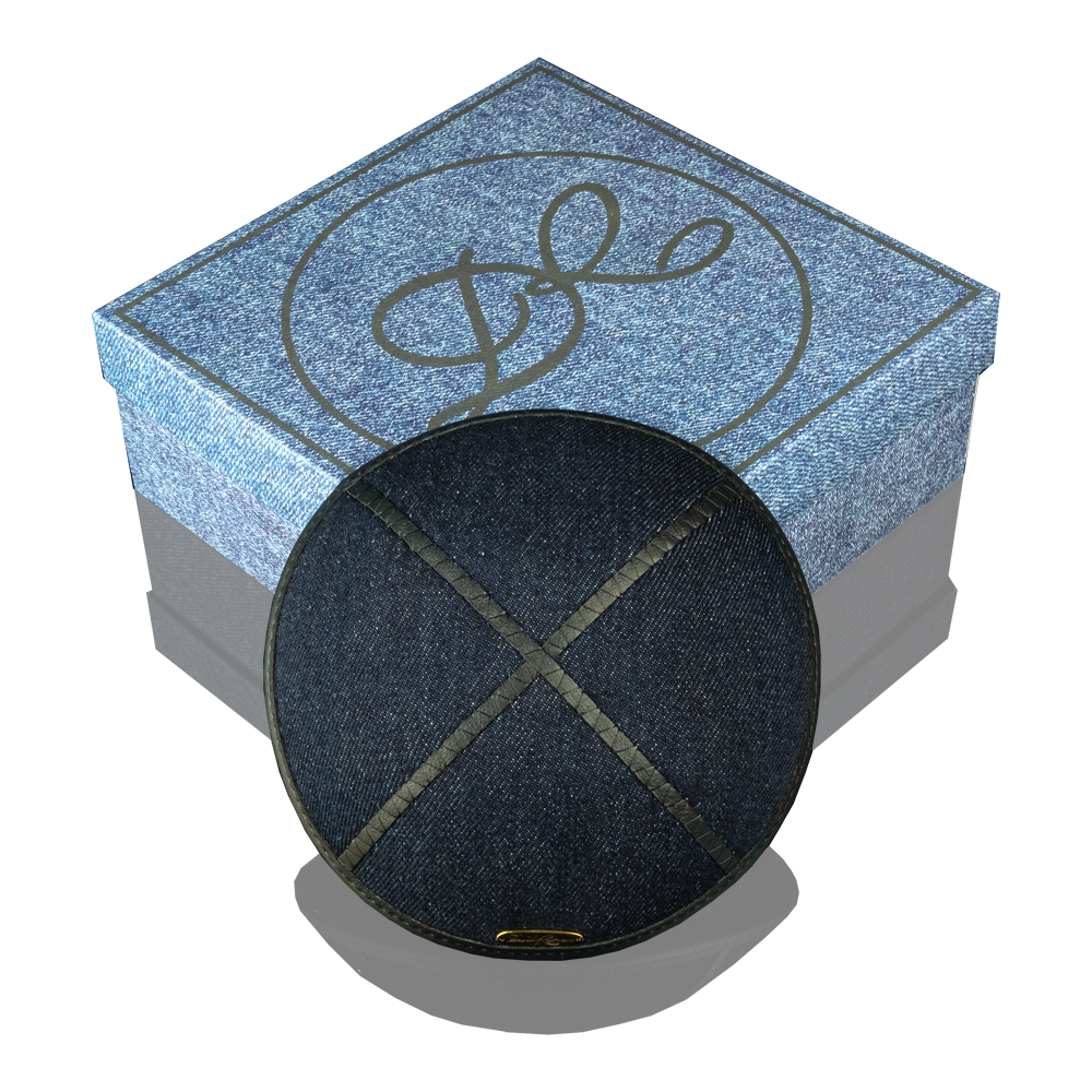 Kippah "Classic" made of denim from the David Roytman luxury Judaica design house. This accessory combines traditional elegance with modern style, emphasizing your faith and individuality. Crafted from high quality denim, this kippah has durability and a unique look. Italian leather elements add sophistication and luxury, making this accessory truly exclusive.