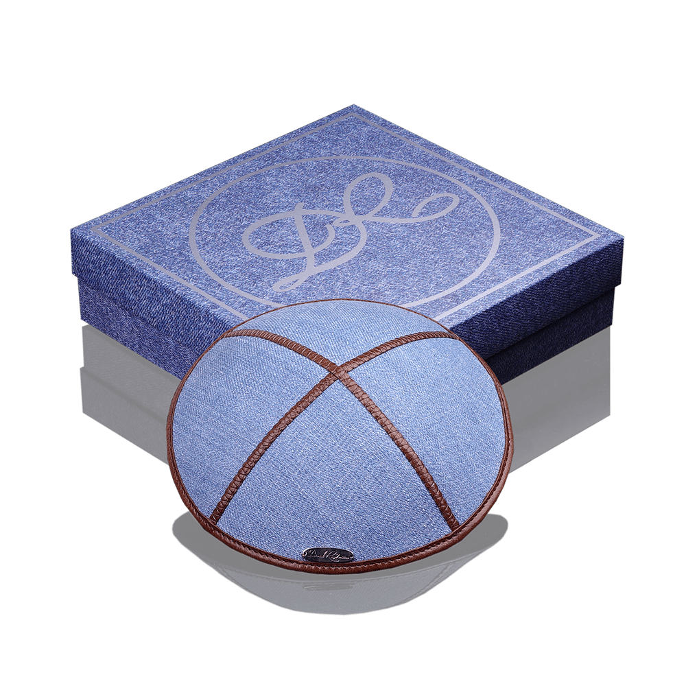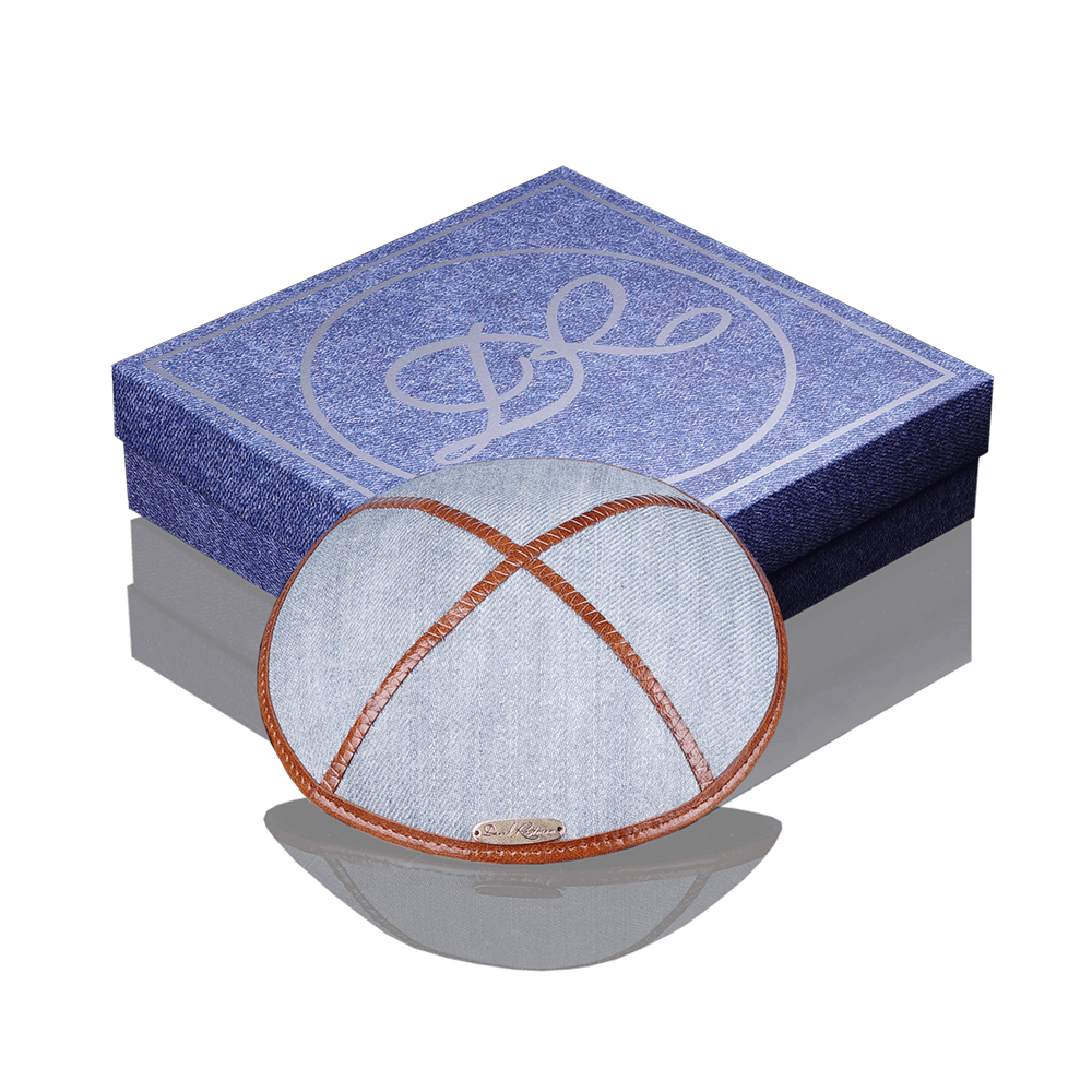 We present you a stylish and refined kippah "Classic" made of denim from the David Roytman luxury Judaica design house. This accessory combines traditional elegance with modern style, emphasizing your faith and individuality. Crafted from high quality denim, this kippah has durability and a unique look. Italian leather elements add sophistication and luxury, making this accessory truly exclusive.