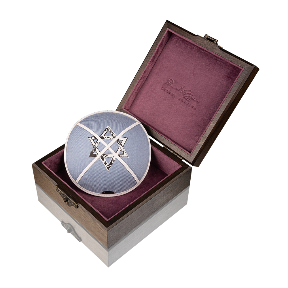 The “Classic” denim art kippah with Star of David from the David Roytman Luxury Judaica design house is an exquisite combination of classic style and Jewish cultural symbolism. Crafted from high quality denim, this kippah becomes a striking expression of elegance and tradition.