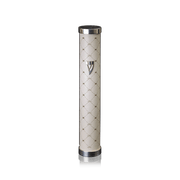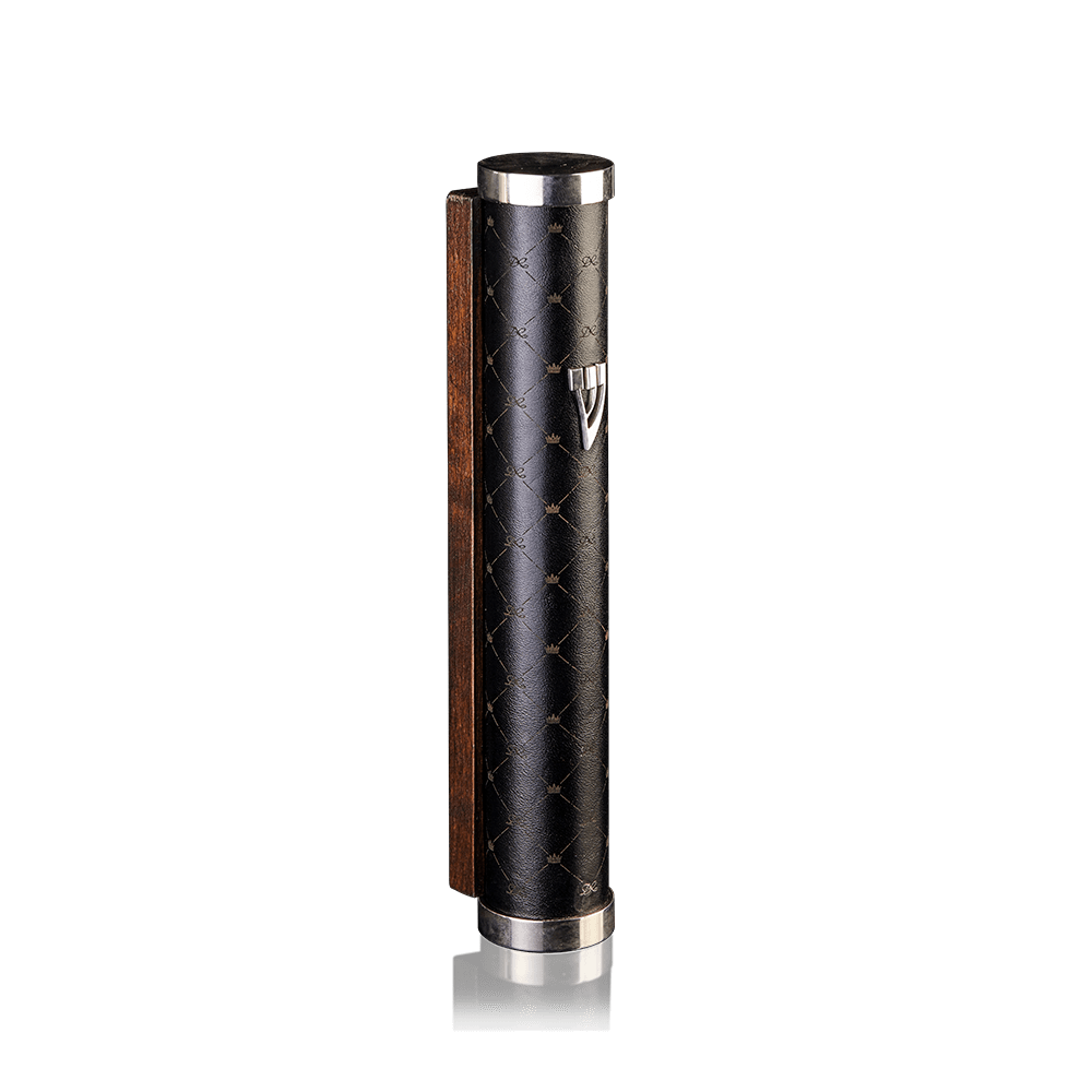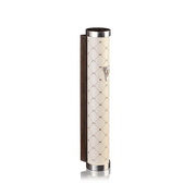 The mezuzah case is handmade from genuine Italian leather and silver. The brand's signature pattern is put on the product with laser engraving. In the center is the traditional letter “Shin,” the first letter of one of the names of God – Shadai. It means “the fire of God that devours all His enemies” and is a protective symbol.