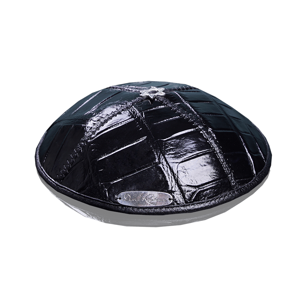 The “Classic” four-wedged kippah is made of genuine crocodile leather. The pattern is exclusive, so no one else will have a similar kippah. The Star of David, Israel's national and cultural symbol, is cast in sterling silver.