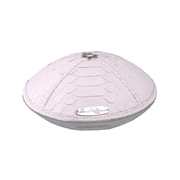 The “Classic” kippah is made of genuine python leather. The pattern is exclusive, so no one else will have a similar kippah. The Star of David, Israel's national and cultural symbol, is cast in sterling silver. The small oval medallion is engraved with the David Roytman logo.