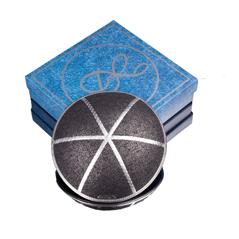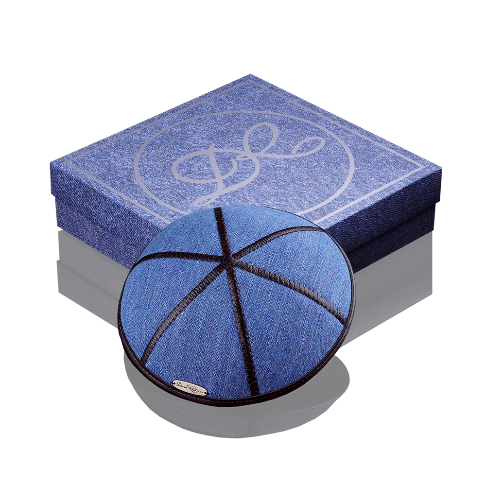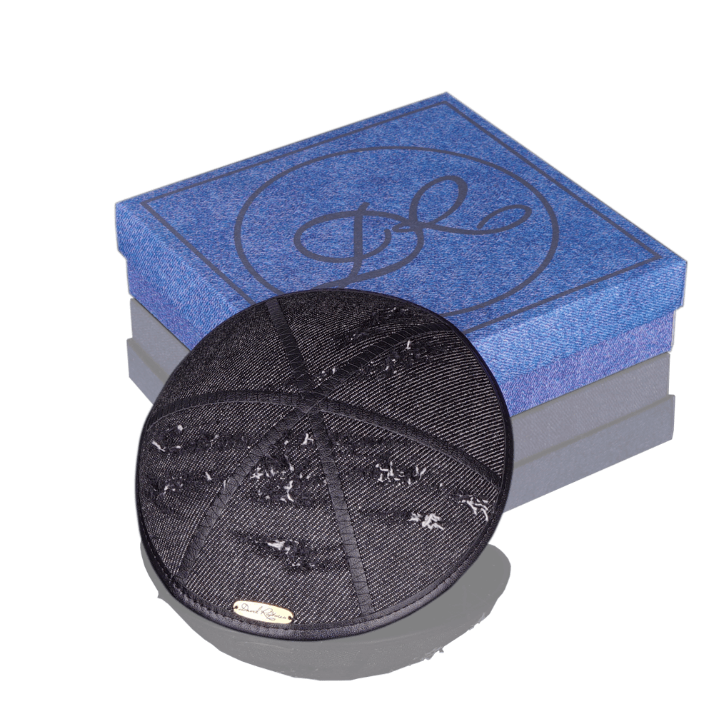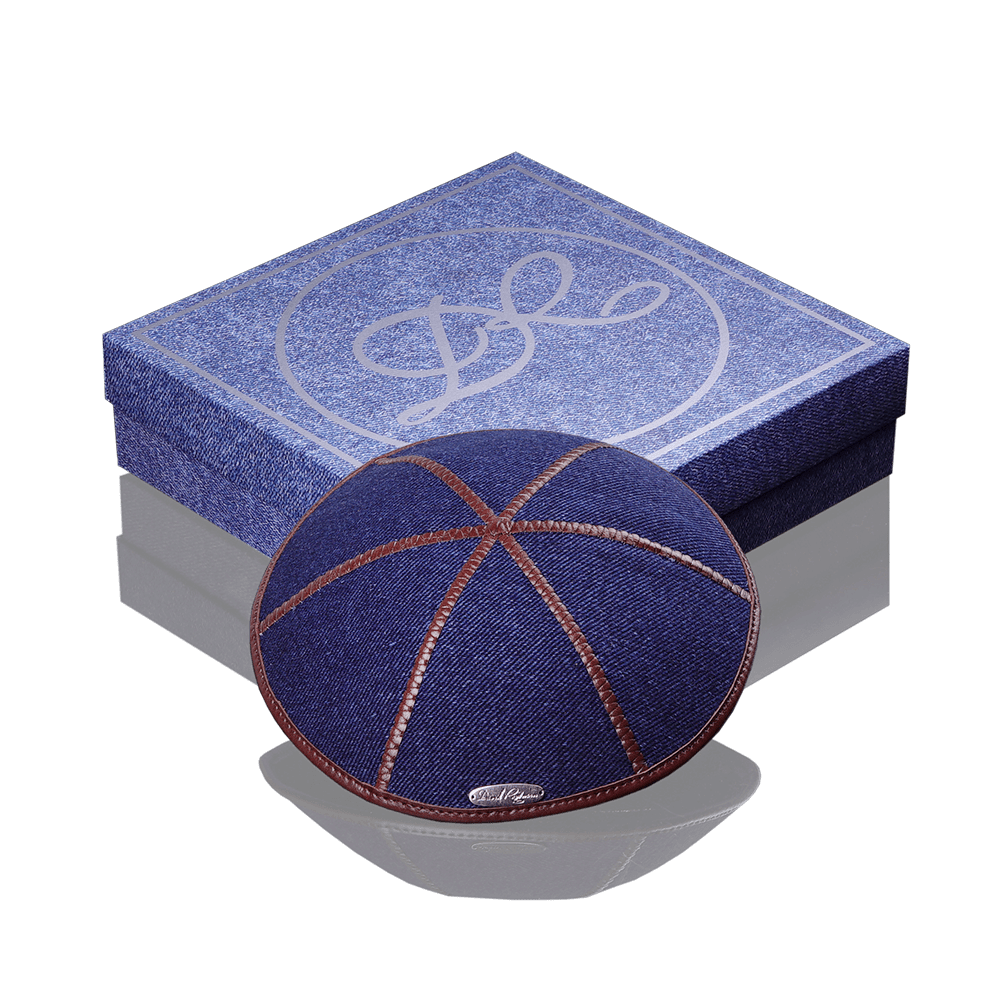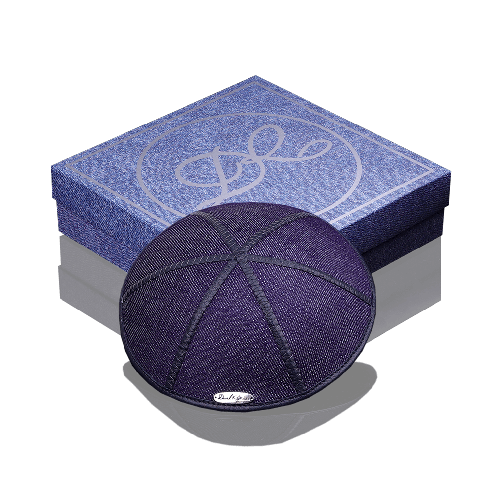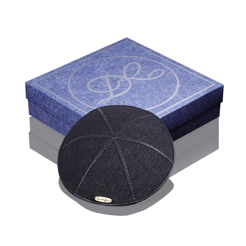 The 'Modern' denim kippah from the David Roytman Luxury Judaica design house is a bold and stylish head covering designed to stand out and emphasize your individuality and modern taste.