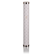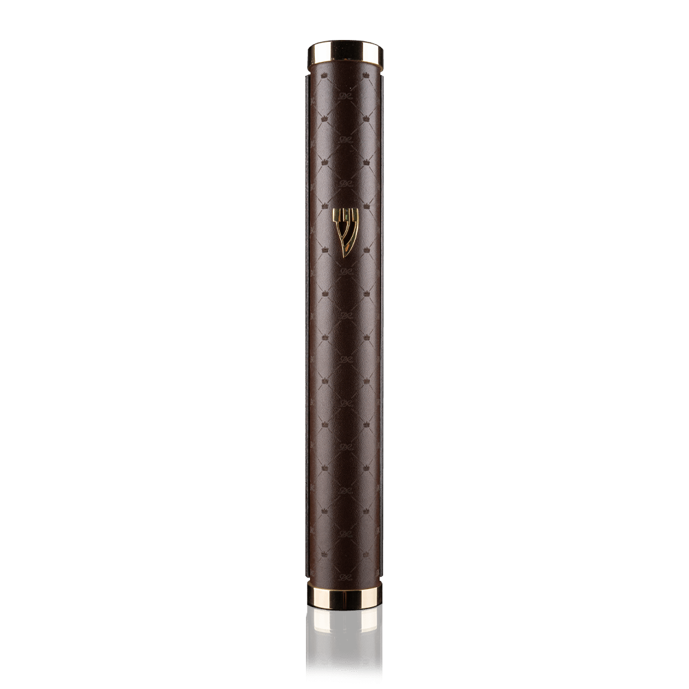 David Roytman artisans handcrafted the mezuzah case of brushed Italian leather and brass. The brand's pattern is laser engraved on the piece. A “Shin” letter is in the center. “Shin” is the first letter of Shadai, one of God's names. It means “the fire of God that devours all His enemies” and is a traditional protective symbol.