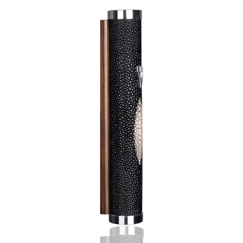 The Jerusalem mezuzah case by David Roytman Luxury Judaica, made of stingray leather, is the epitome of elegance and sophistication. This unique accessory is characterized not only by the beauty of its design, but also by the durability of its material, providing reliable protection for the sacred text.