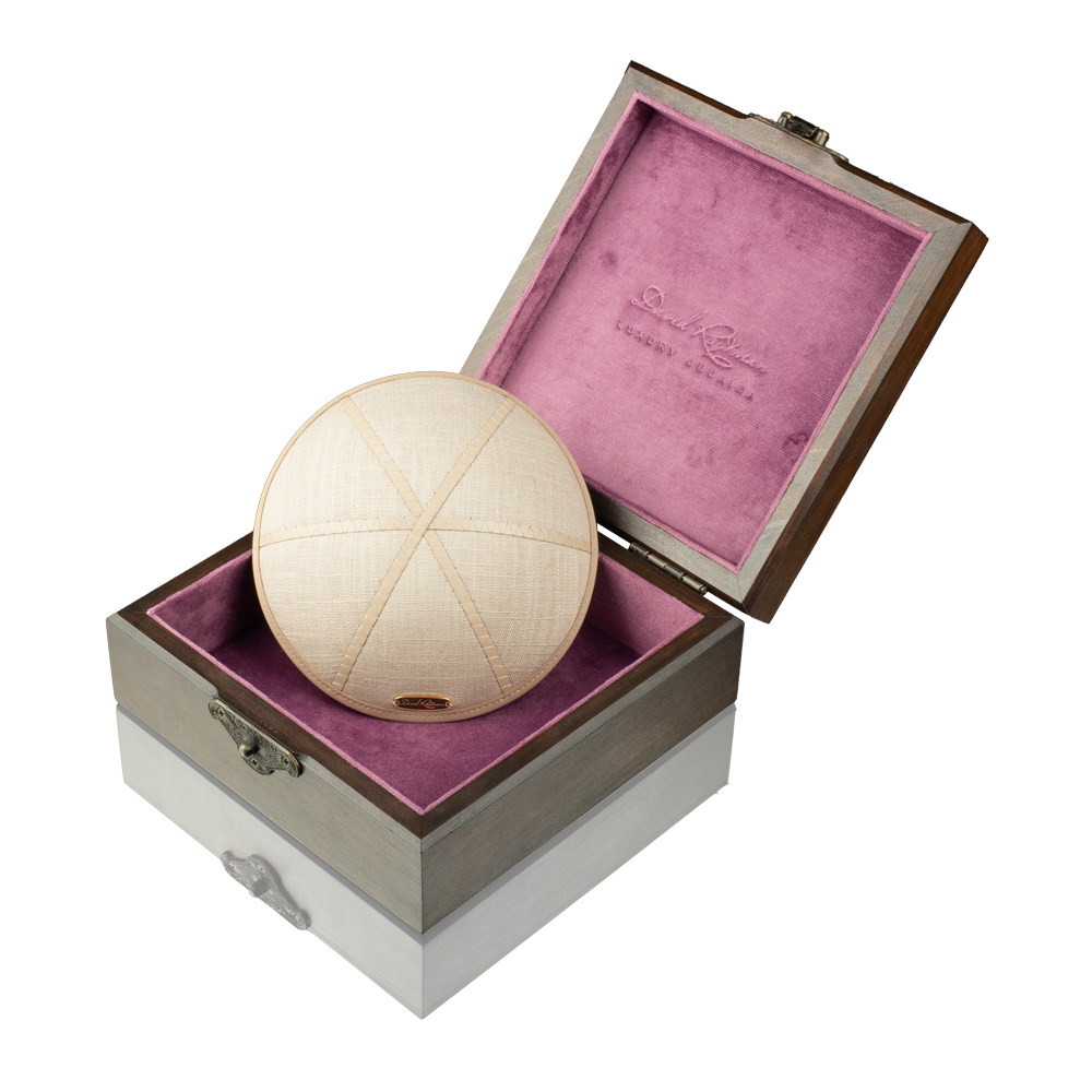 The David Roytman Luxury Judaica Modern linen kippah is a sophisticated and elegant head covering that combines the naturalness of the material with stylish design.