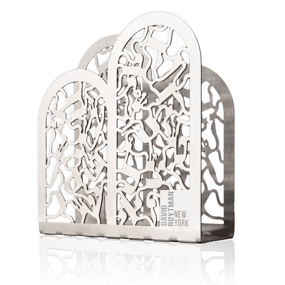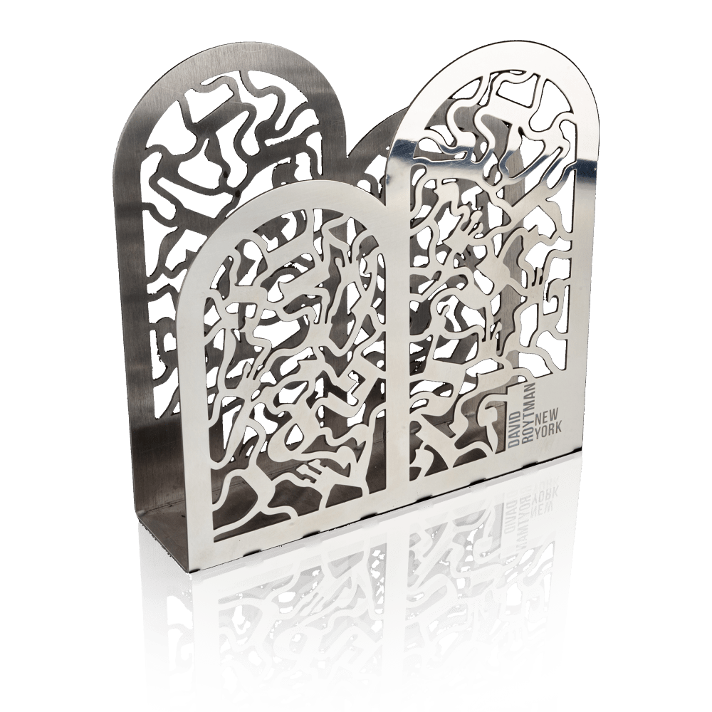 The laser-cut napkin holder with Hebrew letters from the design house David Roytman Luxury Judaica is a unique and colorful piece that combines tradition and modern technology. This napkin holder is created using laser cutting, which allows for high precision and detail of each letter of the Hebrew alphabet. Each letter represents the rich cultural heritage of the Jewish people and can be used as a table decoration or as a gift with deep symbolic meaning.