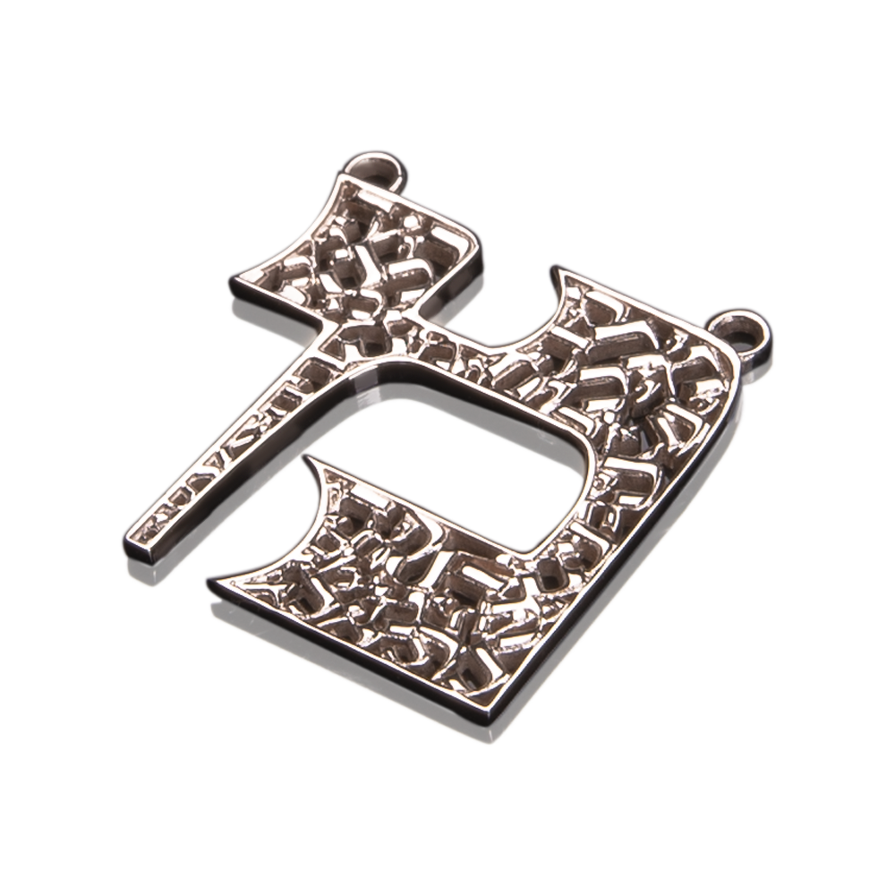 The pendant is handcrafted by the brand jewelers in solid gold. The small bas-relief of Hebrew letters is laser engraved.