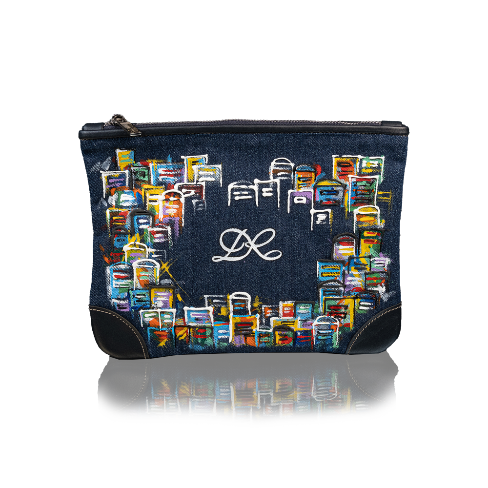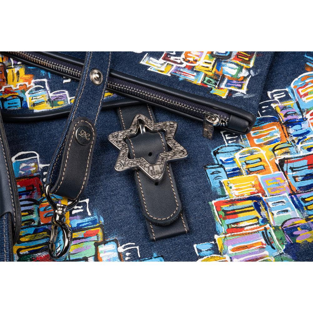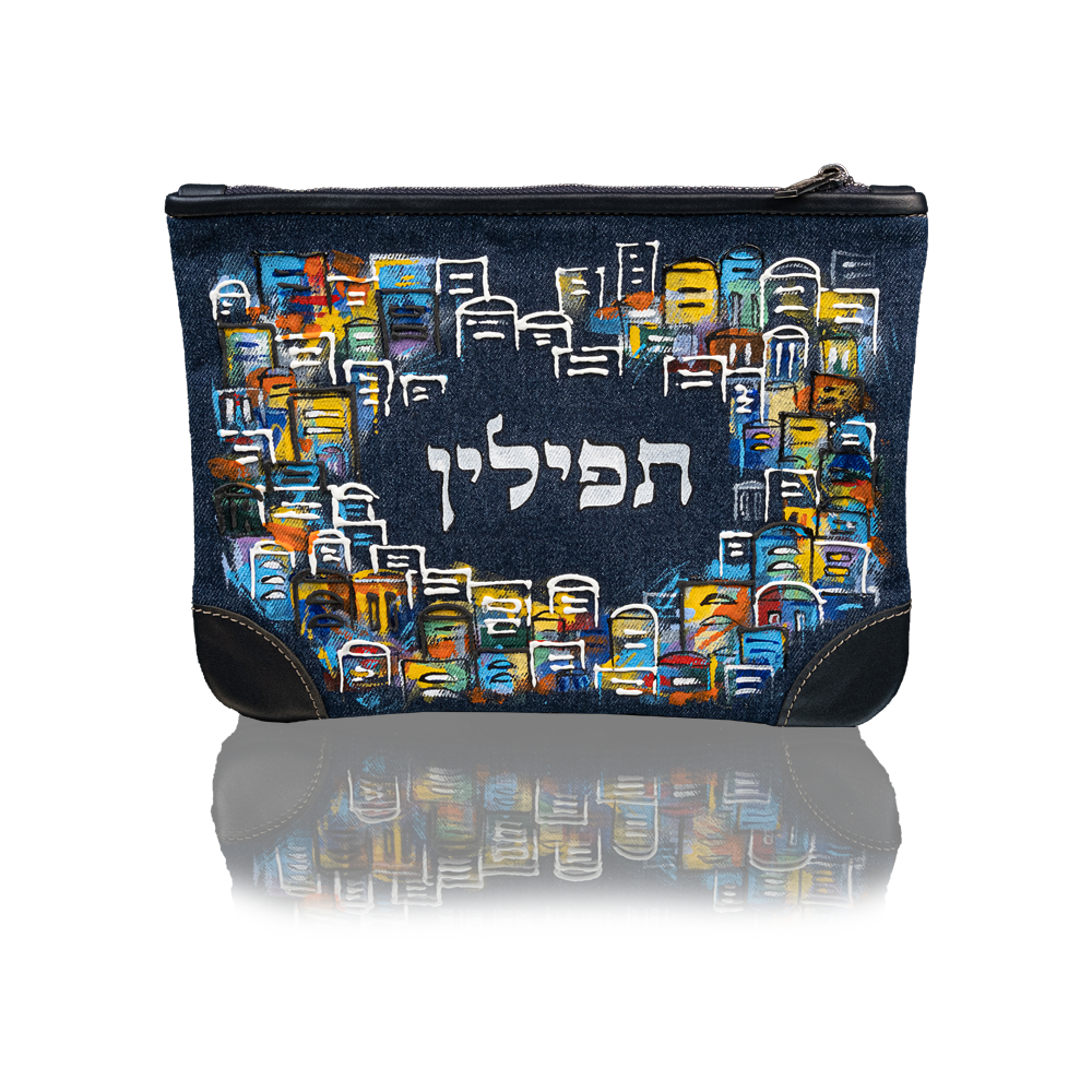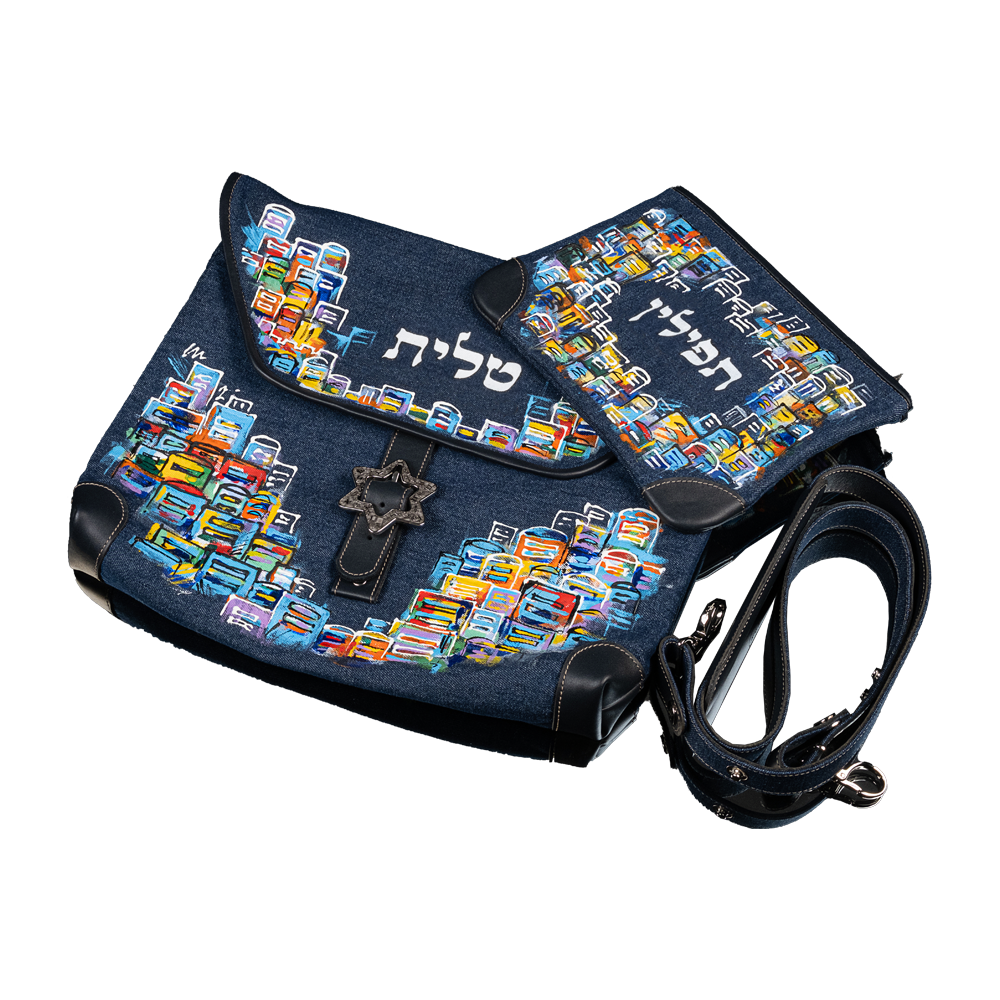 Set "Tzfat" for Tallit and Tefillin with art "Jerusalem" made of denim