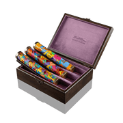 The set includes 3 cases in the same style, made of brass and genuine Italian leather and hand-painted with acrylic paints. At the centre of each is the traditional letter “Shin”, the first letter of one of God's names, Shadai. It means “the fire of God that devours all His enemies” and is a powerful protective symbol.