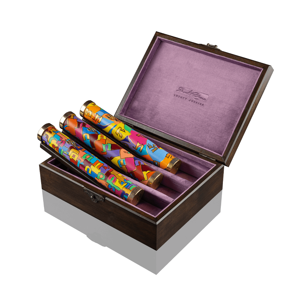 Together with artists from the David Roytman Design House, Luxury Judaica has created a unique art collection of Jerusalem mezuzah cases. Abstract painting combined with traditional Judaica will have a place of honour in every Jewish home, where customs are honored, but contemporary art is loved.