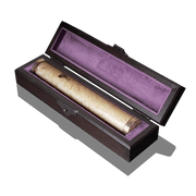 The case is made of amber. The traditional Hebrew letter “Shin” protects the sacred scroll. It refers to one of God's names, Shadai, and means “the fire of God that devours all his enemies".
