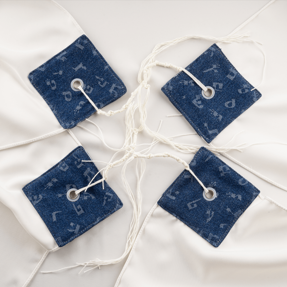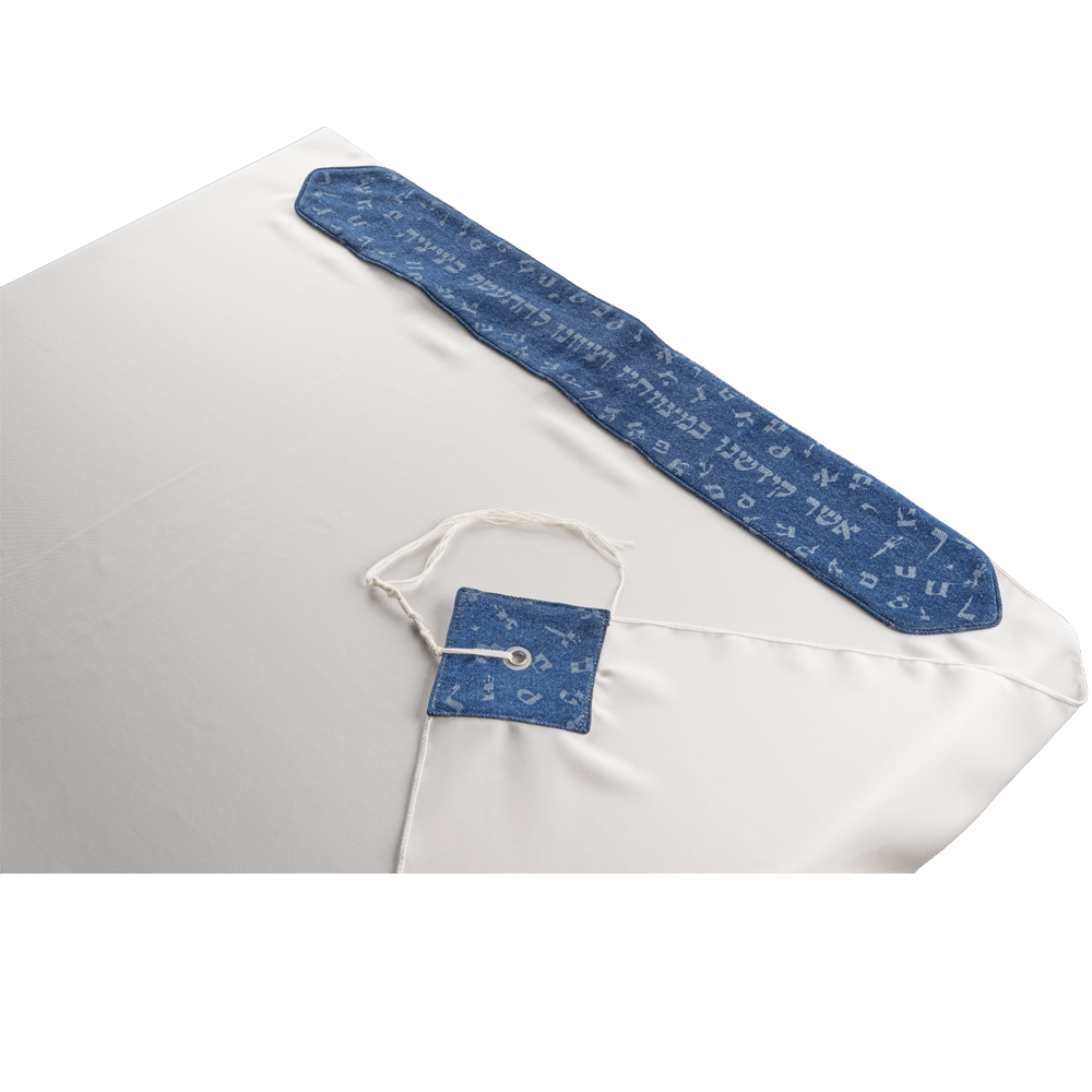 Tallit "Letters of the Hebrew alphabet" made of wool with denim