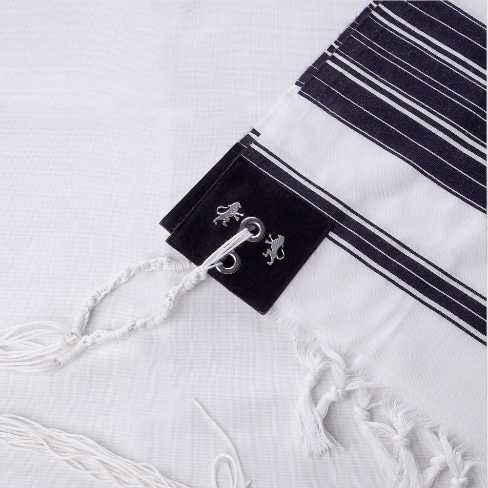 Tallit is one of the traditional prayer attributes of Jewish men. In ancient times, they wore this rectangular coverlet as a daily garment in the morning and used it as a blanket at night. Now men wear it during their daily morning prayers. On the edge of each tallit, it is customary to tie a tzitzit. This bundle of threads woven together is a reminder to keep the commandments.