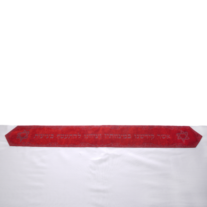 Laconic, restrained design is the hallmark of the classic collection. The tallit is made of natural woollen fabric. The corner of the piece features a suede insert for tzitzit with an ornament and a curved Star of David, whose exclusive design was developed by David Roytman. The embossing is laser-engraved, and the tzitzit is hand-woven by artisans from a natural thread.