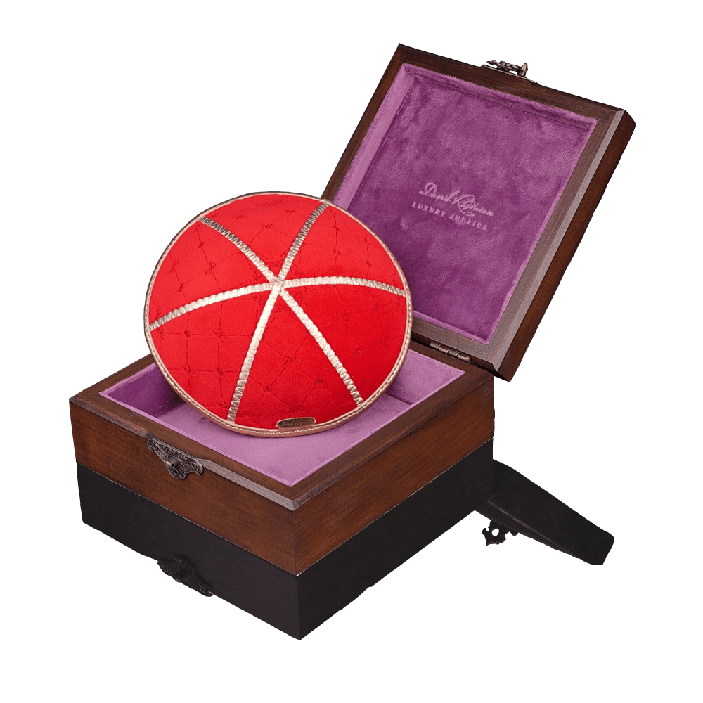 The David Roytman Luxury Judaica “Modern” velour kippah is a sophisticated and stylish headwear that combines elegance and traditional Jewish motifs. Made of high quality velour, this kippah has a unique charm and exquisite design.