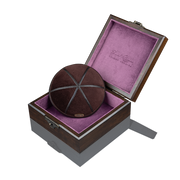 The Modern kippah is handcrafted by artisans. The velvet is contrasted with a sleek leather trim in the tone of the piece, creating a textured look. The medallion features the brand's signature laser-engraved logo.