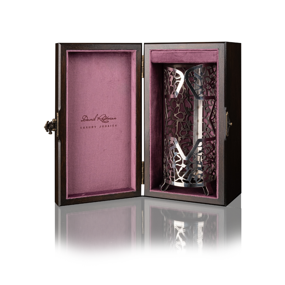 The exquisite wine stand from the David Roytman Luxury Judaica design house is crafted from high quality stainless steel, offering a modern and elegant design for your wine experience. This stylish accessory is perfect for storing your favorite bottles of wine, giving your space a sophisticated look.