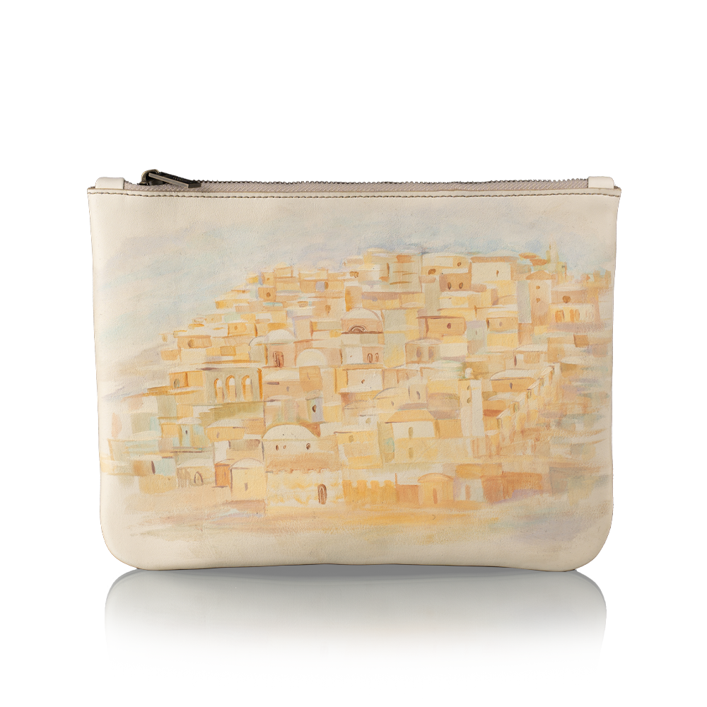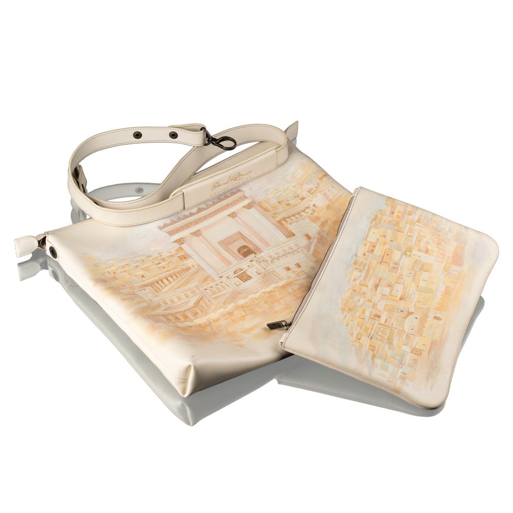 Exclusive luxury accessories, from the cult design house David Roytman Luxury Judaica, will not only declare your confident position in society, but also become a direct confirmation of impeccable taste. Buying a set "Jerusalem" for tallit and tefillin from the Art Collection you become the owner of original products, the quality of which will please you for many years. When sewing bags, masters chose natural Italian leather, and hand-painted with acrylic. The bags are securely closed with a metal zip.