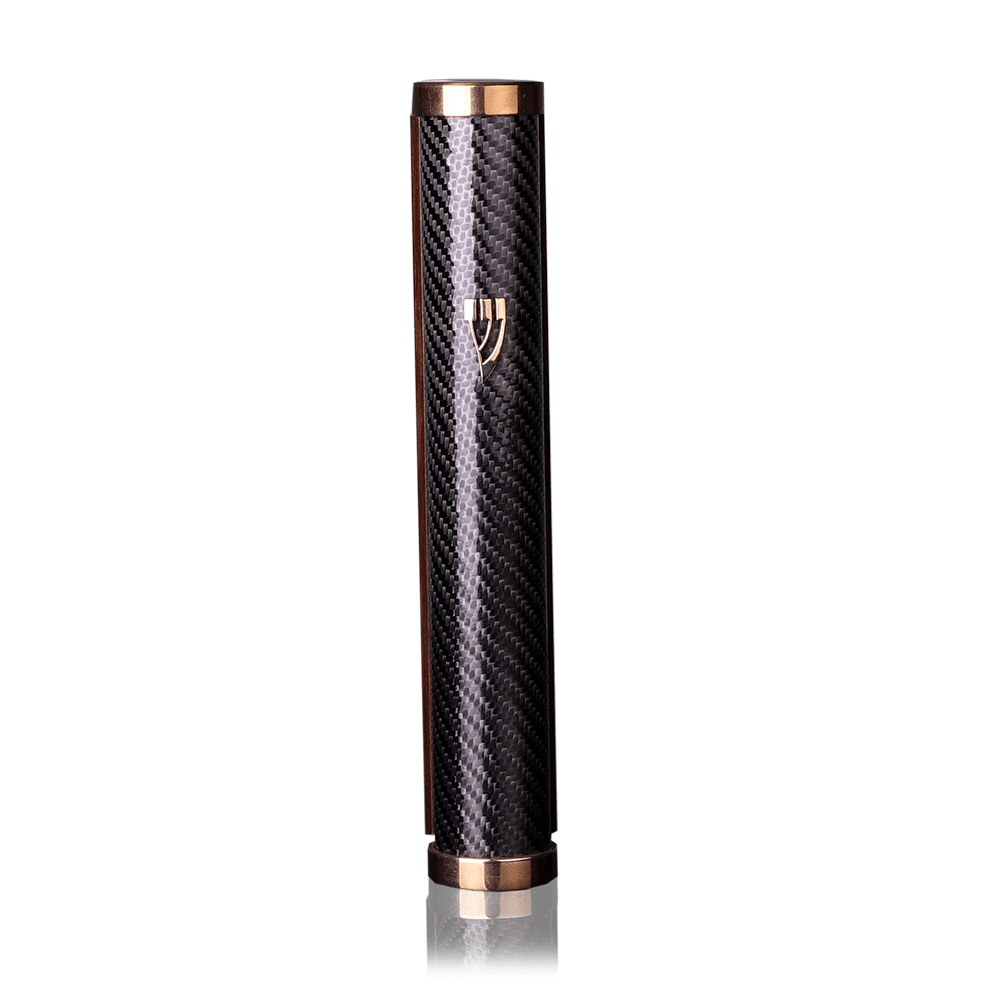 The case is made of carbon. The traditional Hebrew letter “Shin” protects the sacred scroll. It refers to one of God's names, Shadai, and means “the fire of God that devours all his enemies".