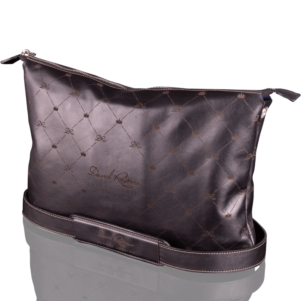 Travel bag “770” for Tallit and Tefillin is made of high quality Italian leather. The brand's signature pattern is laser engraved on the top of the product. The decorative elements are made of brass.