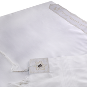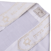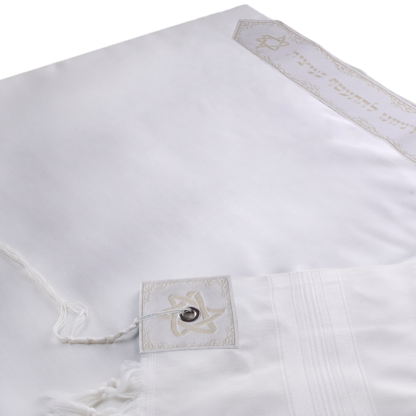 Le tallit est l'un des attributs traditionnels de prière des hommes juifs. Dans les temps anciens, ils portaient ce couvercle rectangulaire comme un vêtement quotidien le matin et l'utilisaient comme couverture la nuit. Maintenant, les hommes le portent pendant leurs prières matinales quotidiennes. Sur le bord de chaque tallit, il est d'usage de nouer un tzitzit. Ce faisceau de fils tissés ensemble est un rappel de garder les commandements.Un design laconique et sobre est la marque de la collection classique. Le tallit est fabriqué en tissu de laine naturelle. L'angle de la pièce présente un insert en daim pour le tzitzit avec un ornement et une étoile de David courbée, dont le design exclusif a été développé par David Roytman. Le gaufrage est gravé au laser, et le tzitzit est tissé à la main par des artisans à partir d'un fil naturel.